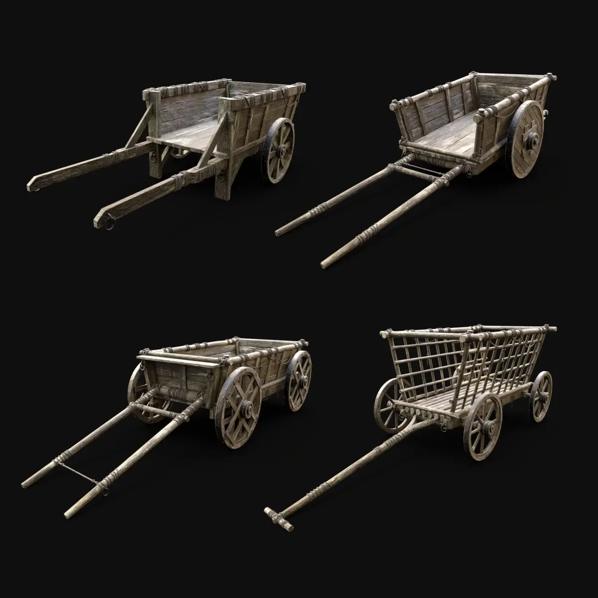This collection contains 4 highest quality medieval wooden carts - compatible with Unreal Engine, Unity and other engines: