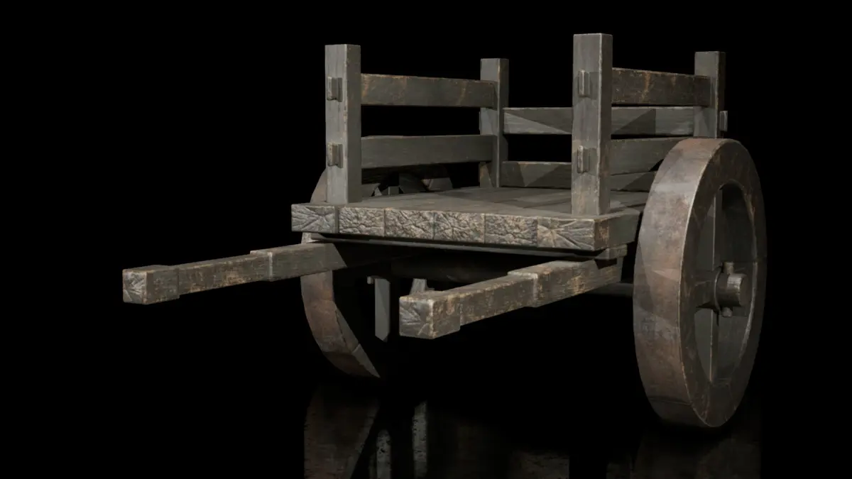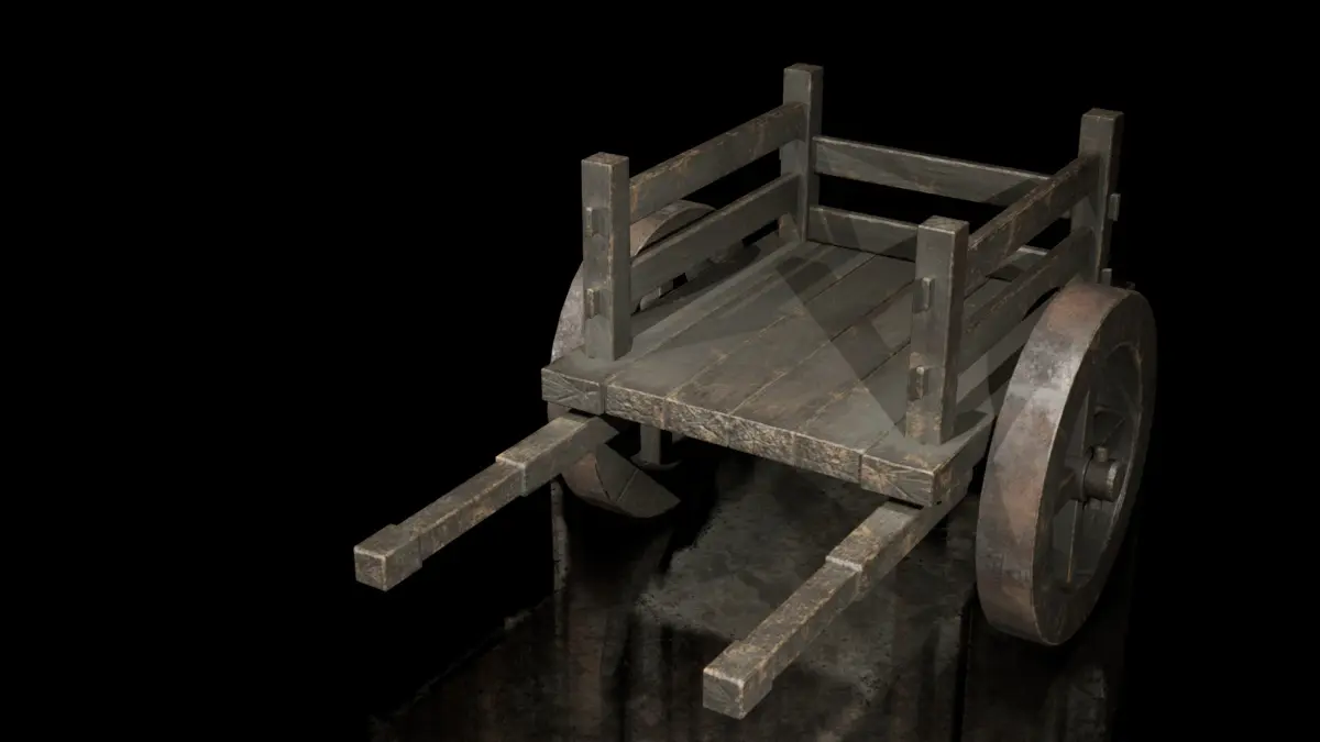 Buy Cart Wooden Wheeled Low-poly 3D model