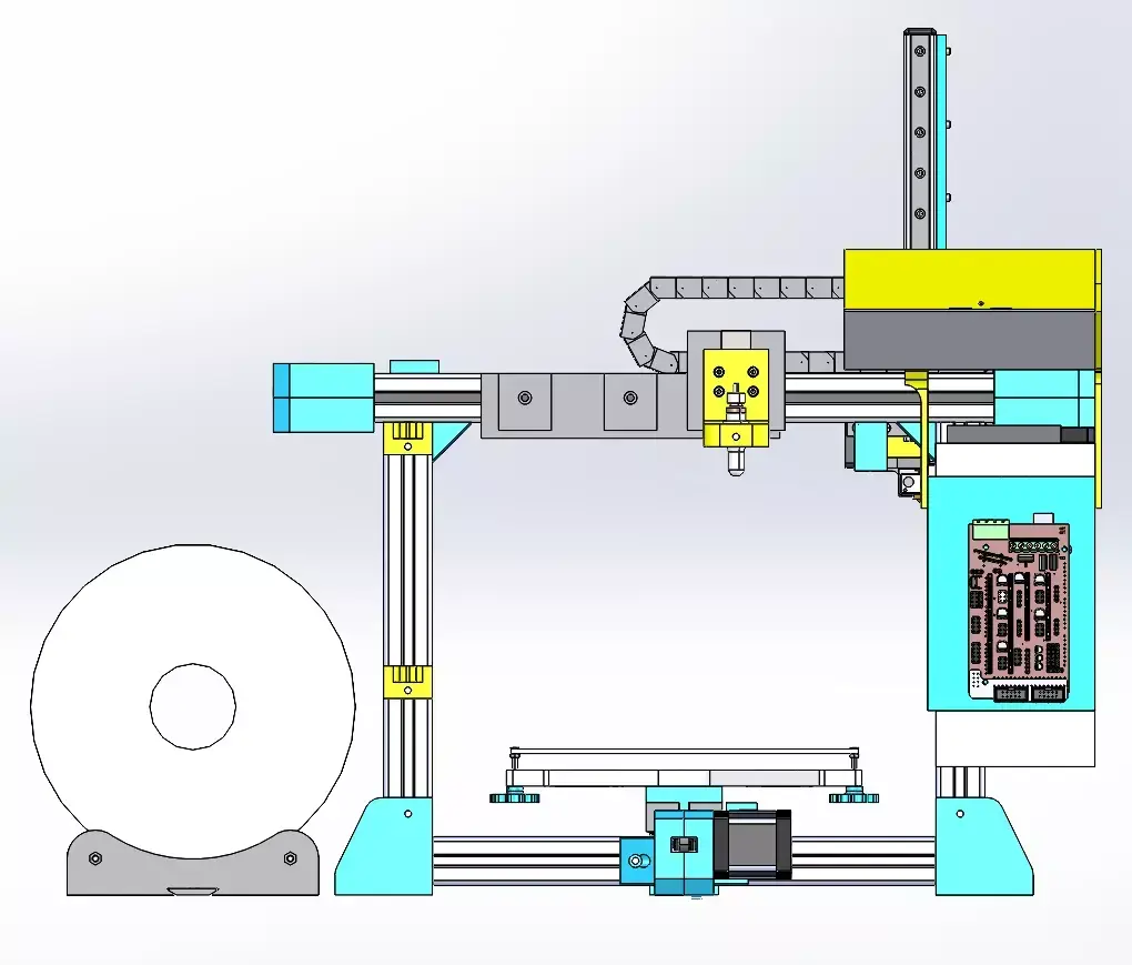 - Core Structure and Functions2.1 Motion SystemThree-Axis Cartesian Layout: The X, Y, and Z axes are driven independently. The X-axis controls the left-right movement of the print head, the Y-axis controls the front-back movement of the print bed, and the Z-axis controls the up-down lifting of the print head, realizing precise positioning in three-dimensional space to ensure printing dimensional accuracy.Linear Guide and Transmission: Equipped with high-precision linear guide rails and screw/ synchronous belt transmission mechanisms, matched with stepper motors, to achieve smooth, low-noise movement, effectively reducing printing jitter and improving surface quality of printed parts.Cable Chain Protection: The X-axis is equipped with a closed cable chain to protect the wires and tubes of the print head, preventing wire abrasion and interference during movement, ensuring long-term stable operation.2.2 Printing and Feeding SystemExtruder and Nozzle Assembly: The print head integrates a high-temperature extruder and nozzle, which can melt and extrude thermoplastic filaments (such as PLA, ABS) to complete layer-by-layer deposition and molding.Filament Supply System: The external filament spool holder is matched with the filament feeding mechanism, which can stably supply filaments, ensuring continuous and uniform extrusion during printing, avoiding filament breakage and clogging.Print Bed Platform: The flat and heated print bed provides a stable forming base, which can improve the adhesion of the first layer of the printed part, effectively preventing warping and deformation, and ensuring the success rate of printing.2.3 Control and Operation SystemControl Panel: The X-axis is equipped with an integrated control panel, including a display screen and operation knobs, which can directly set printing parameters, start/stop printing, and adjust the printer status, realizing offline operation and convenient use.Modular Design: The overall structure adopts a modular design, with clear division of each axis and component, which is convenient for disassembly, maintenance, and functional upgrade, such as replacing the extruder, upgrading the print bed, etc.