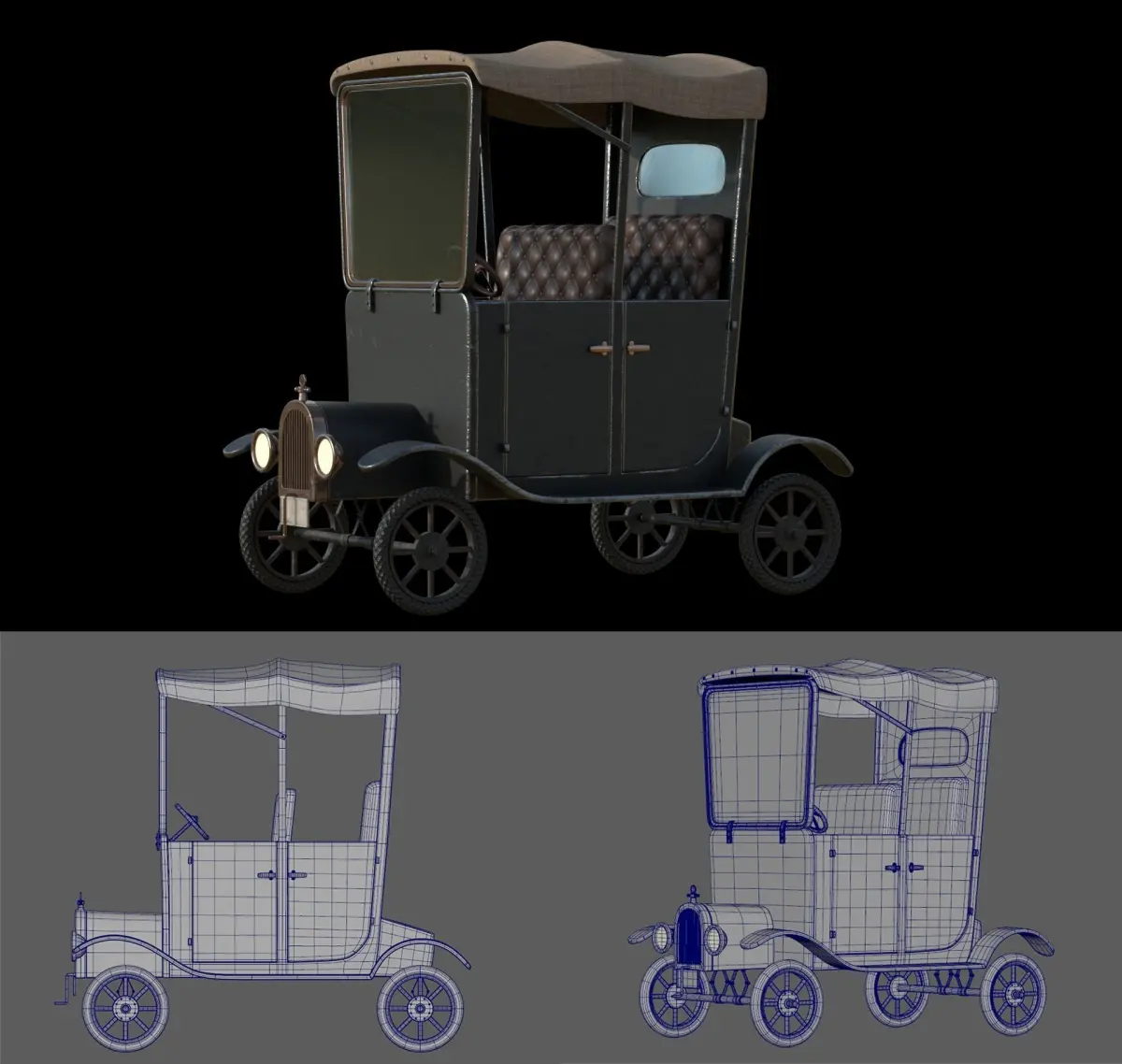 CarThesis old fashioned car Low-poly 3D model