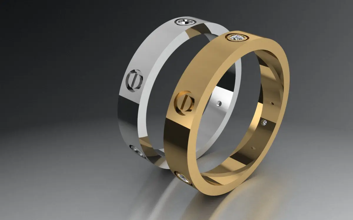 Designed for 3D printing. STL files have sharp edges for jewelry work. Cartier Rings R16 - Gold 14k - 5.34 GR Silver 925 -4.29