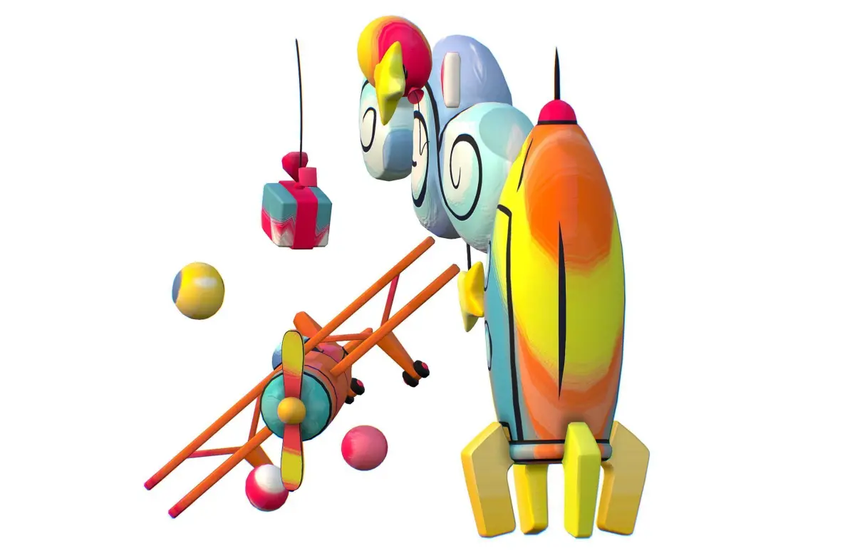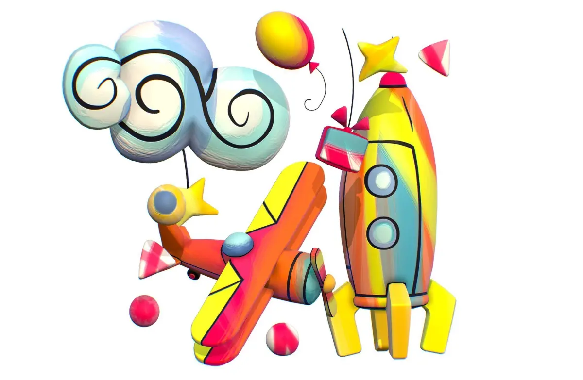 Cartoon 3D illustration Aircraft Rocket Toy - 6 separate Maya files with insect animations - there is a possibility to send previews of animations on request, leave your comments.