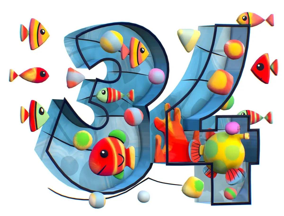 HomeCatalogCartoon 3D illustration Number 3 4 Fish Low-poly 3D model