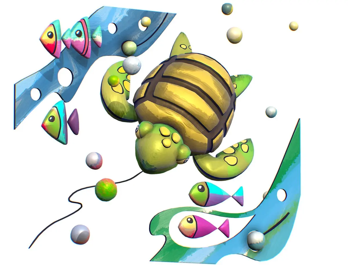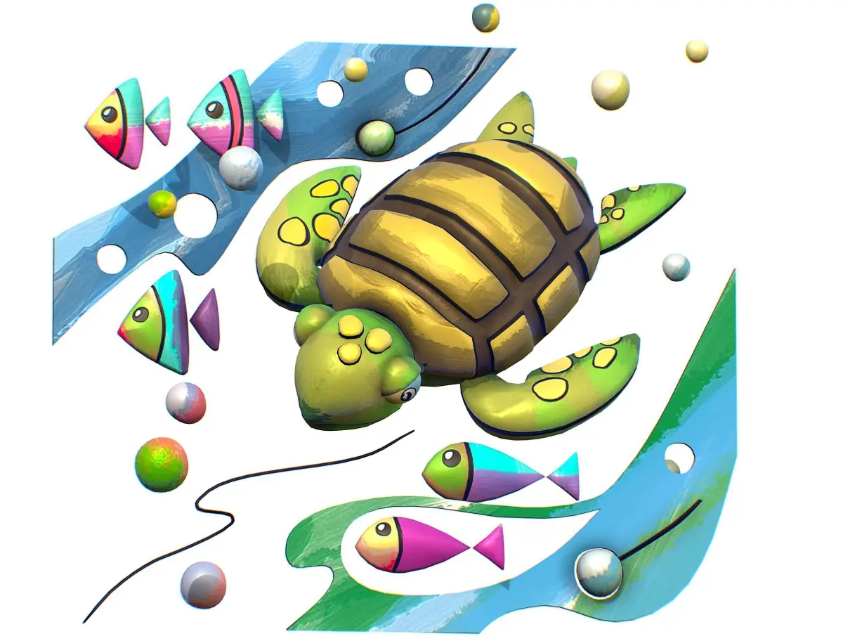 Cartoon 3D illustration Sea Animal Turtle Fish