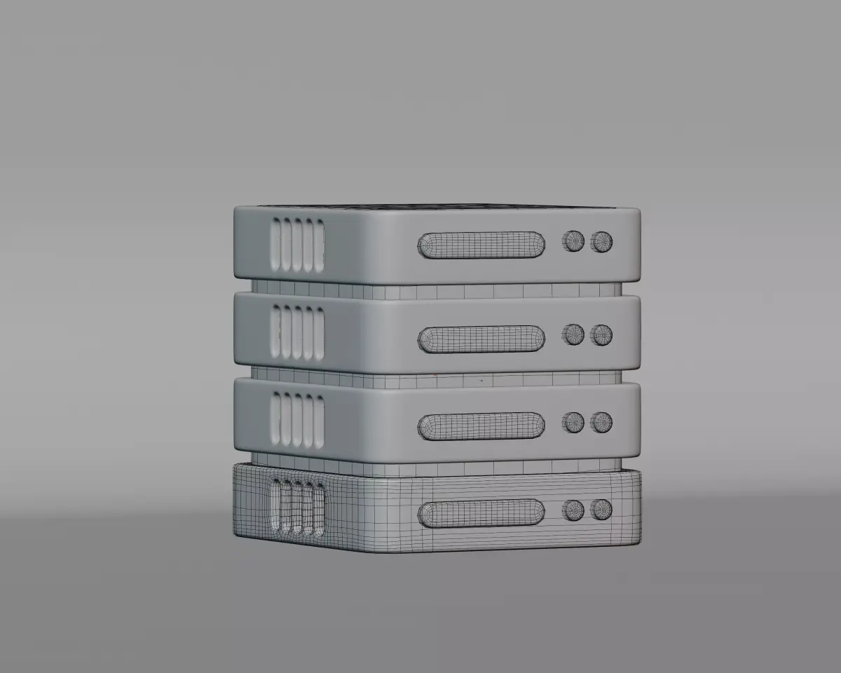 Highly detailed 3d model of a modern Cartoon AI Data Center Server.