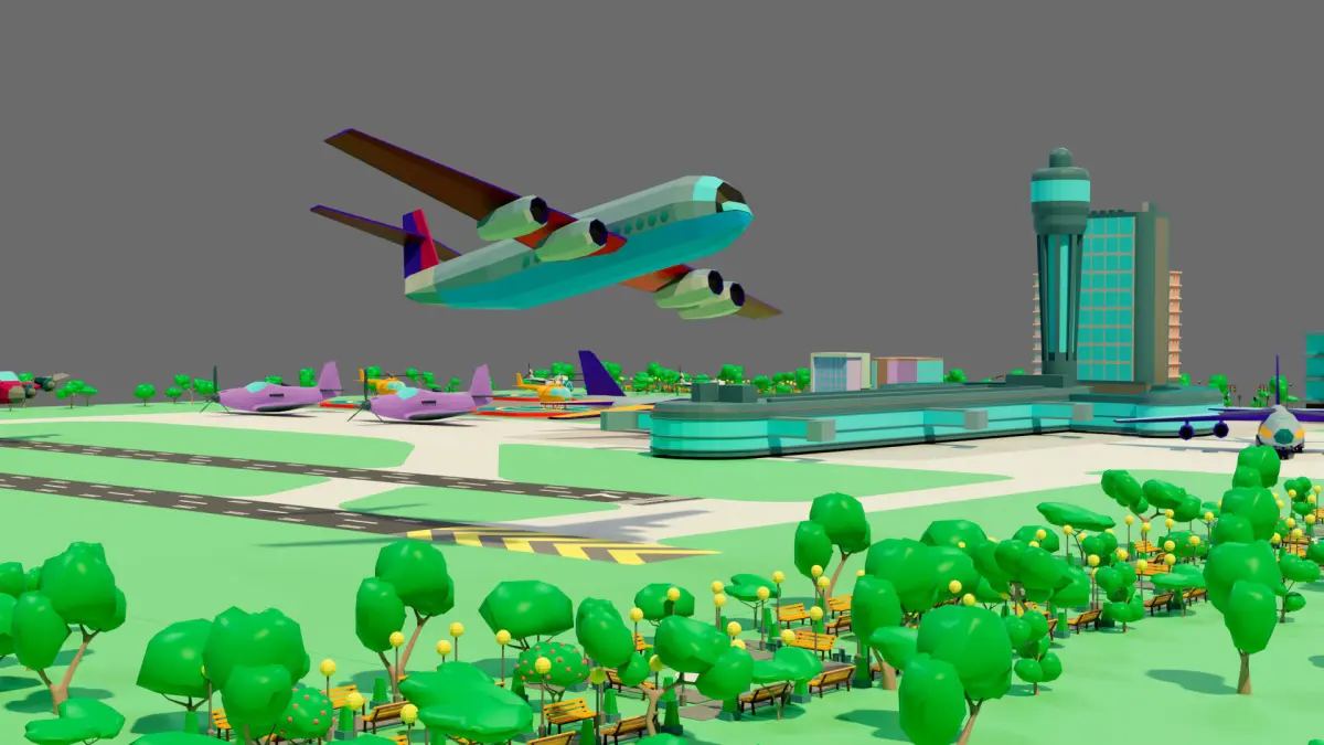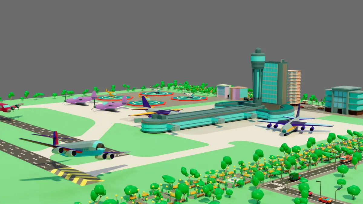 The airport is divided into 4 categories, so you can create anything you want: planes, cars, roads, parks.
