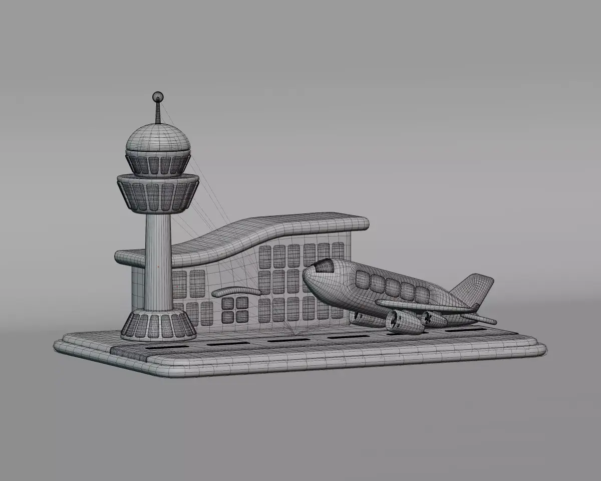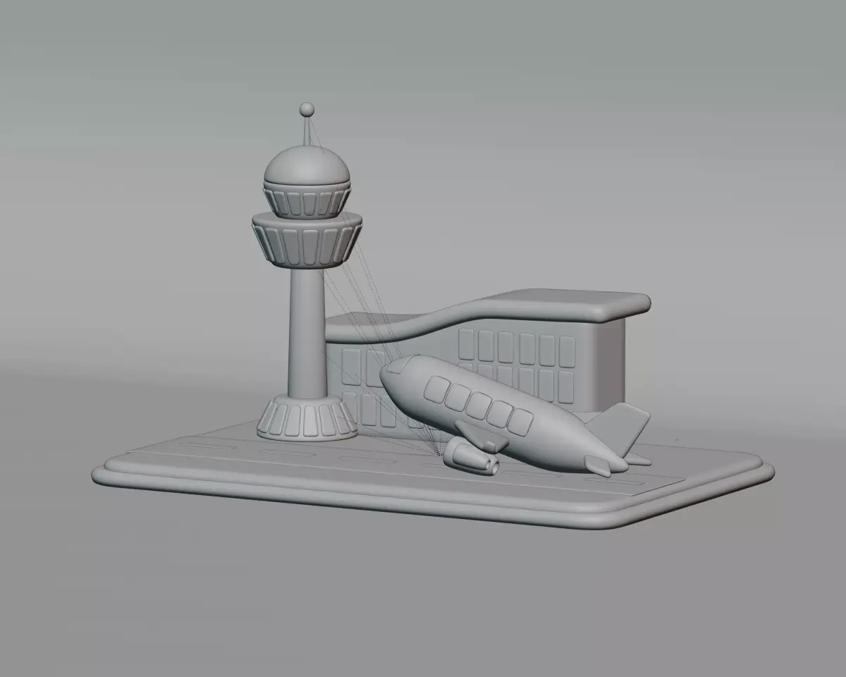 Highly detailed model of a modern Cartoon Airport with Plane.
