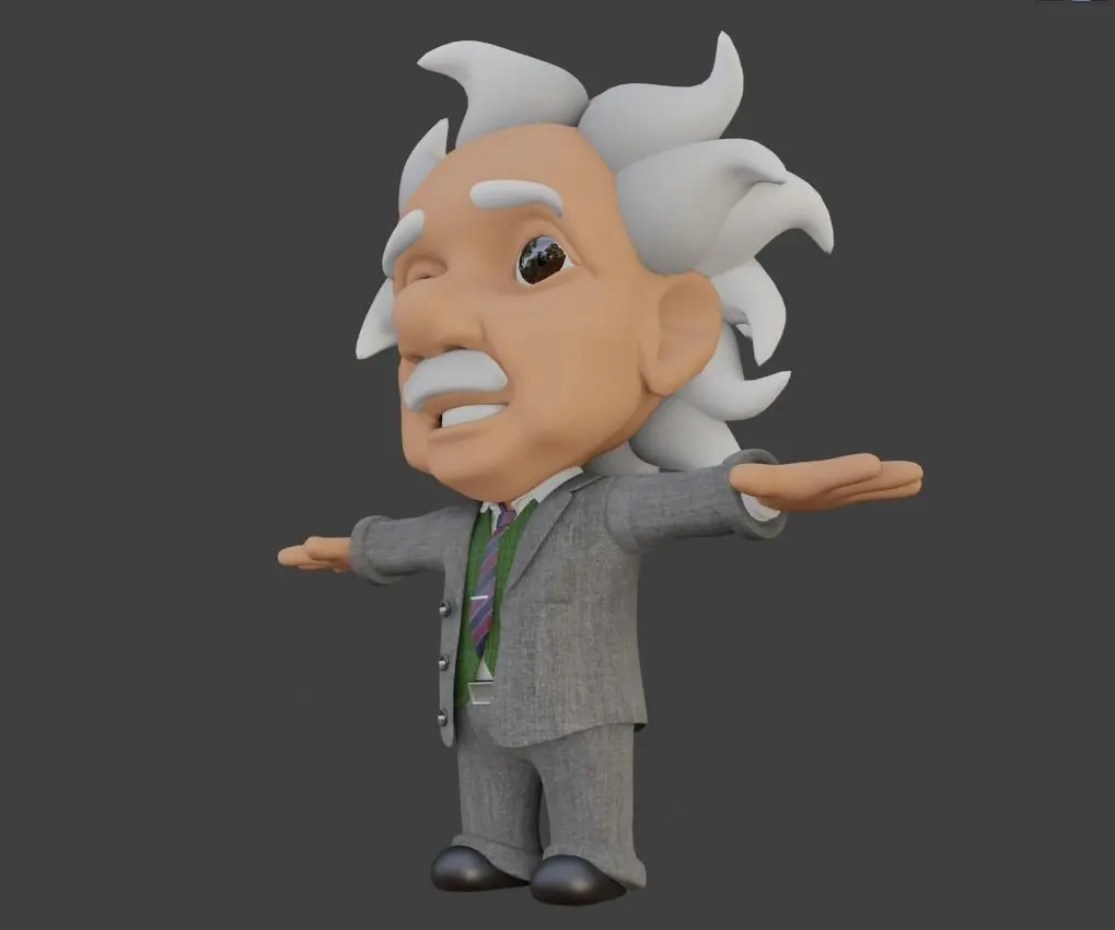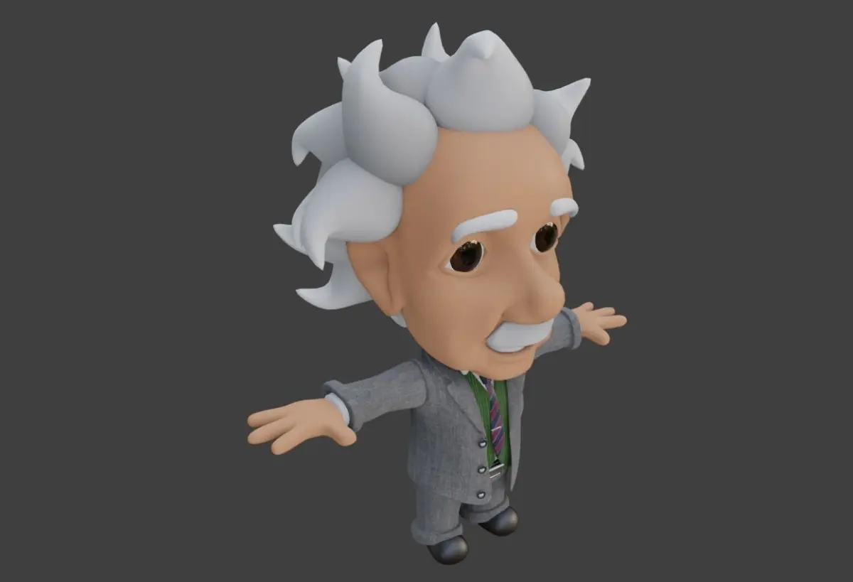 Albert Einstein Cartum modelado no Blender 2.82.