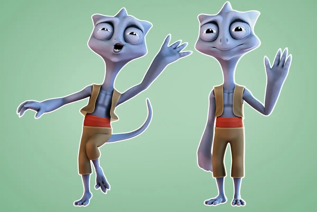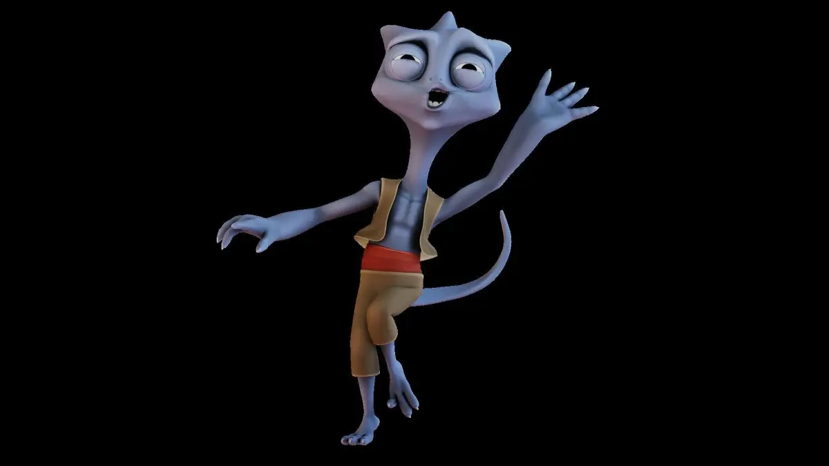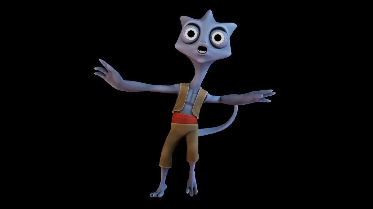 Cartoon Alien-like creature escaped from Area 51*Face Rig Included *Software used Maya rendered with Arnold Included Formats mb, fbx, obj 2048x2048 TIF textures: Face_Diffuse_Map, Legs_Tail_OcclusionMap, Legs_Tail_Diffuse_Map, Face_Occlusion_Map, Face_Diffuse_Map, eyes_c, Clothes_Occlusion_Map, Clothes_Diffuse_Map.
