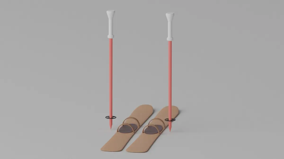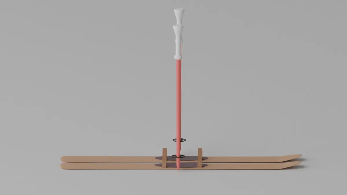 -Cartoon Alpine Skis and Ski Poles.