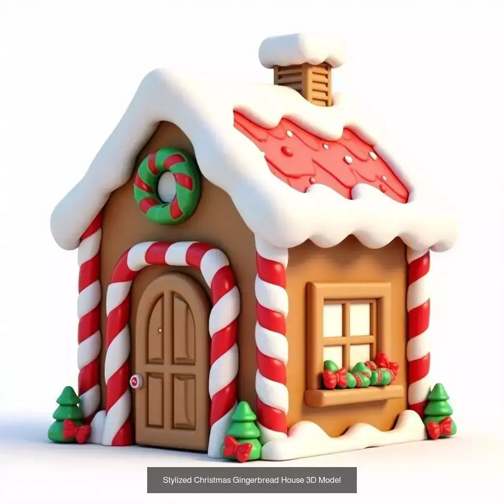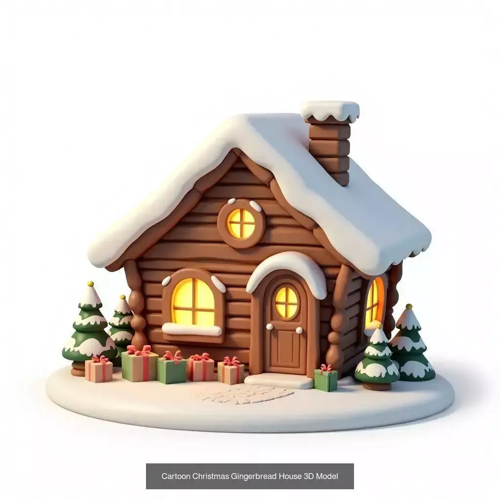 A cheerful Christmas-themed 3D model collection featuring cartoon and stylized gingerbread houses along with a simple winter wooden cabin.This collection is designed to create cozy, festive environments perfect for Christmas villages, winter scenes, holiday games, animations, and seasonal visualizations.