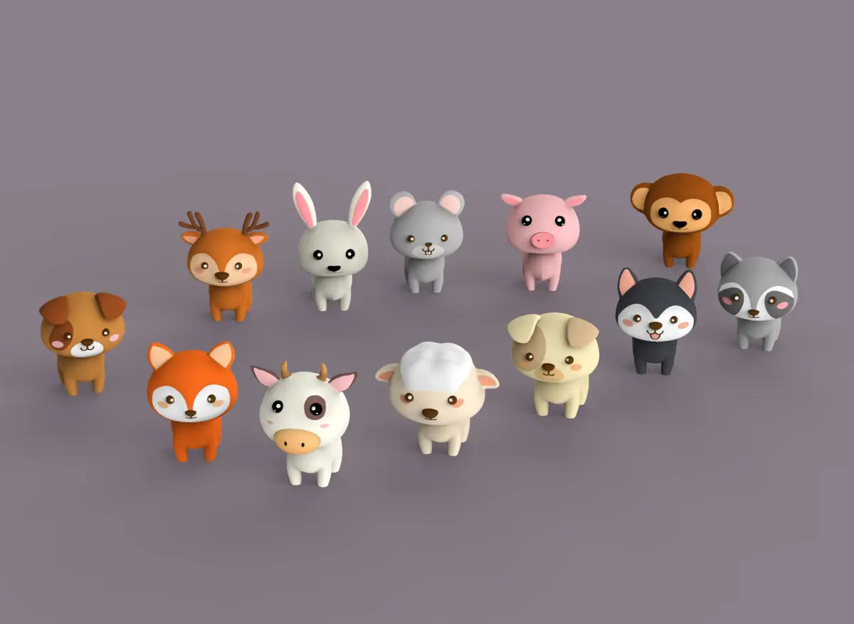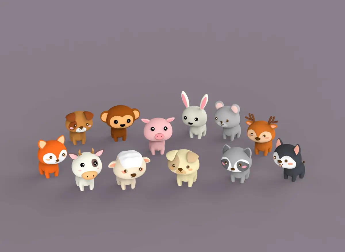 Welcome to the Cartoon Animal Character v001 Collection, an enchanting assortment of four-legged cartoon animals designed to bring joy and charm to your projects. This delightful collection is the first pack of its kind, featuring 12 adorable animals crafted in a charming cartoon style.