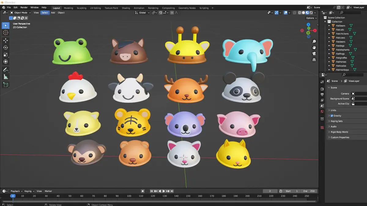 Cartoon Animal Hat Cute Pack 01 3d model low poly