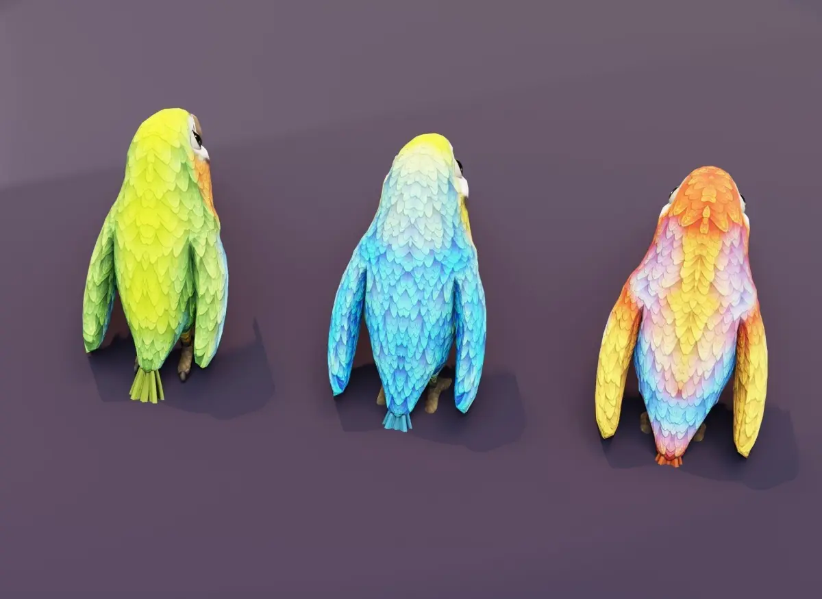 Cartoon Ara Parrot Animated 3D Models consists of 3 models: