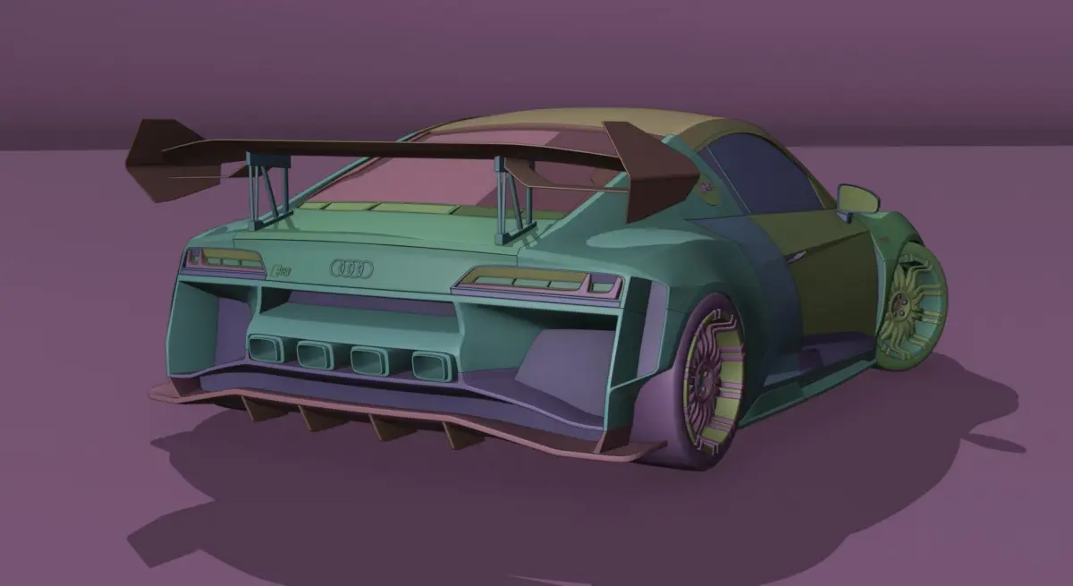Model of a custom Audi R8 with hand paind textures. Bodykit by @hycade-design 3D model. Intended for game/realtime/background use.