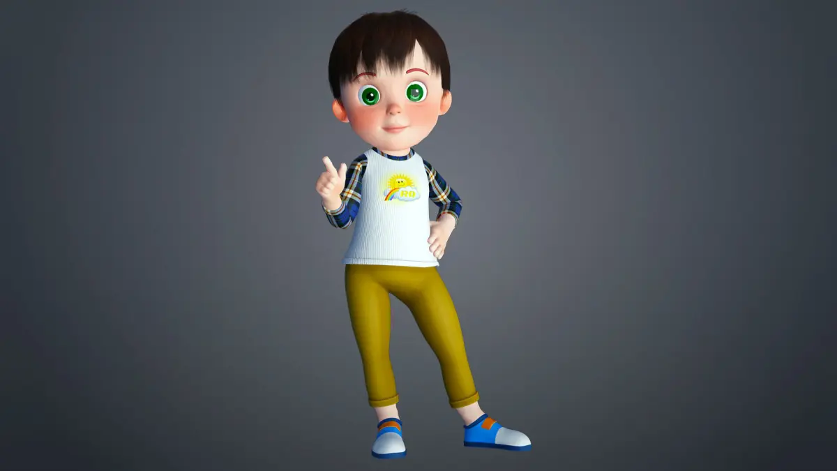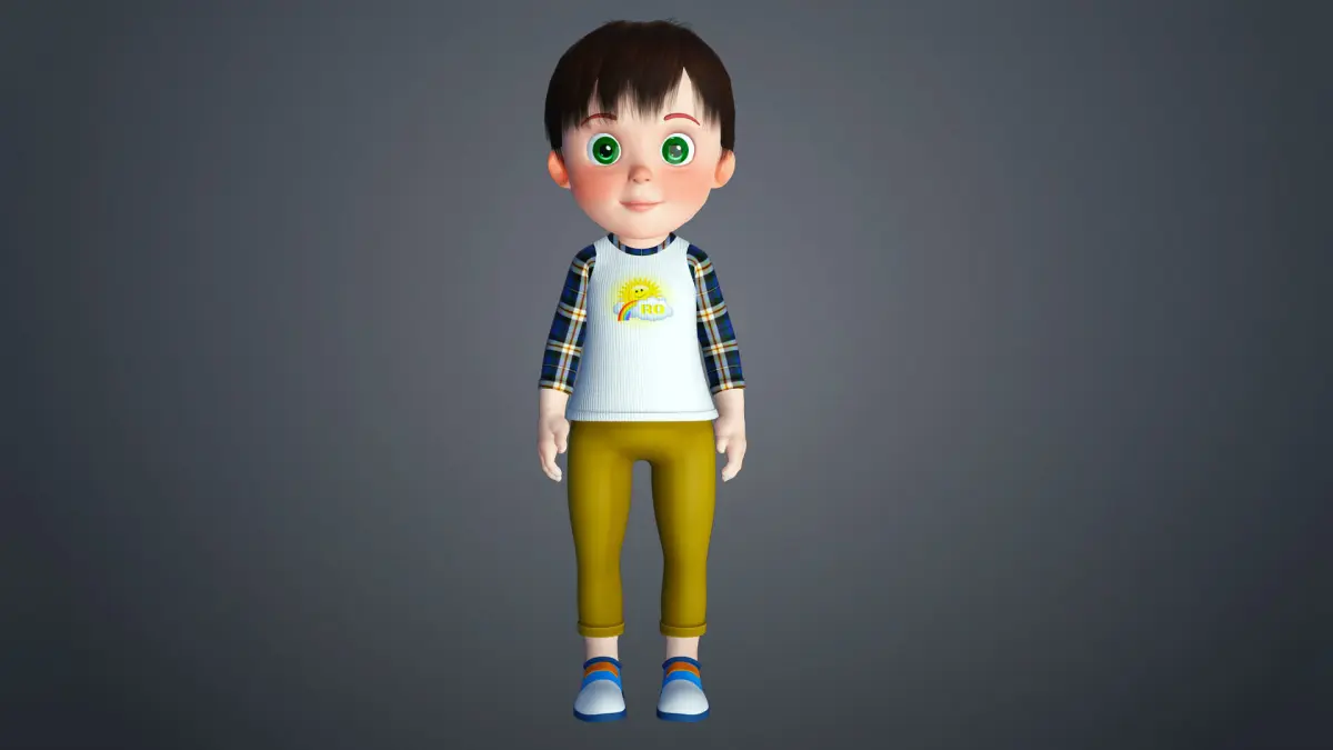 Get the most Stylish Cartoon Baby Rigged Character 3D model with colorful clothes, shoes, eyes that make it better than any available toon character on the internet. Here we provide you the biggest toon baby eyes, nice hair and colorful and stylish shirt, pant and shoes with only one texture that reduce size. Use the FBX, OBJ, Ma and MB with the Textures that you need for your own software that you use. You can use it into your multiple animation series and here you can use this 3D model into your high poly and low poly both projects.