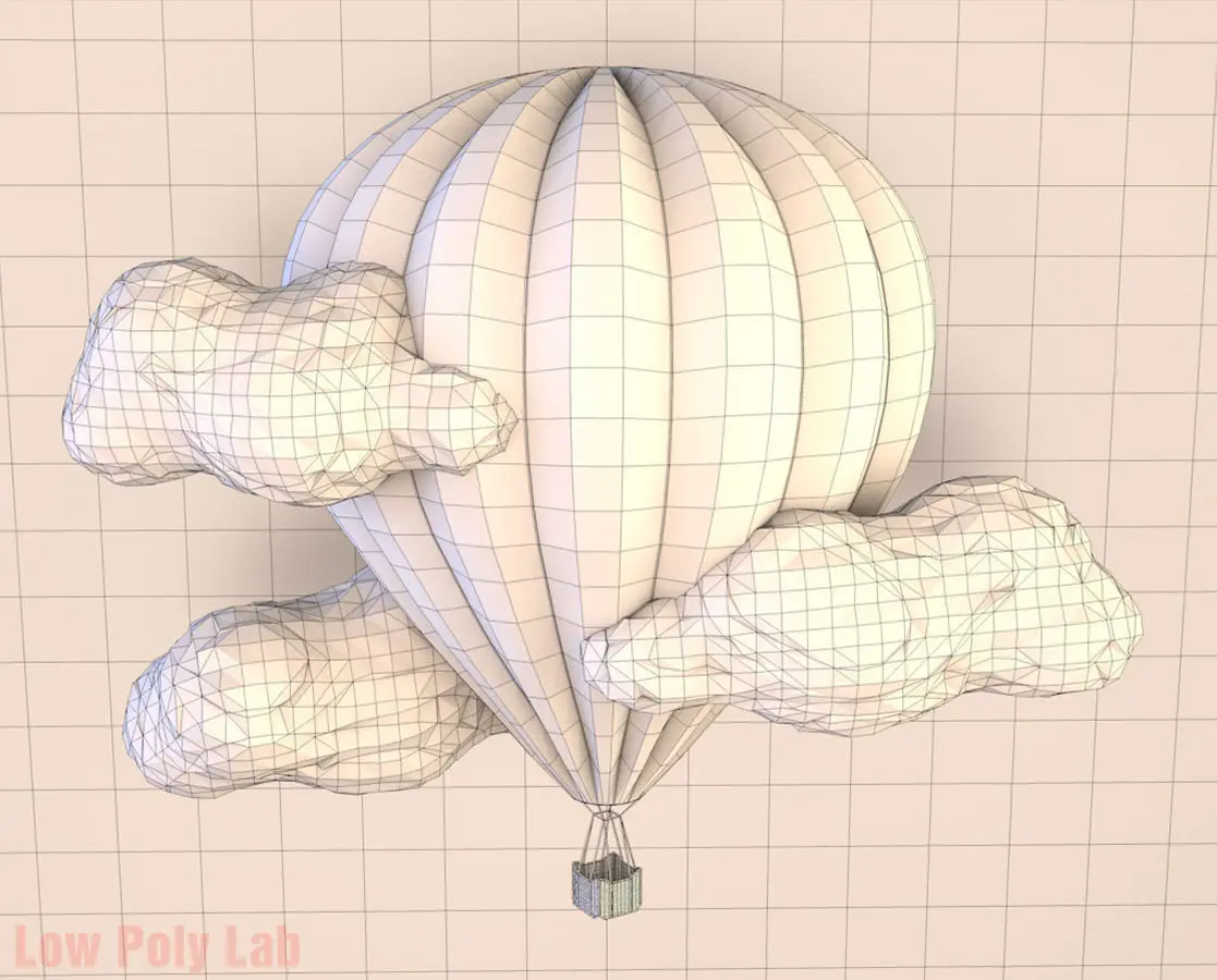 Low poly balloon presented in a colorful version so you can focus the audience on it in your project. Also in the 3D model included cloud's, as a minimum scene environment.