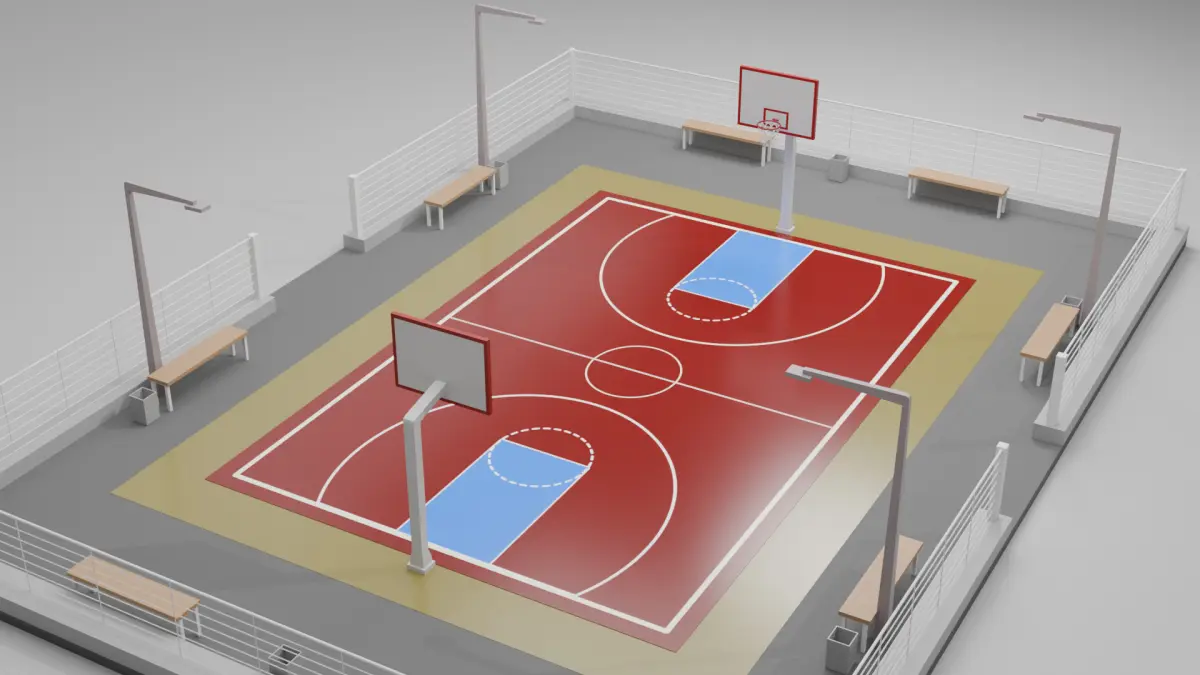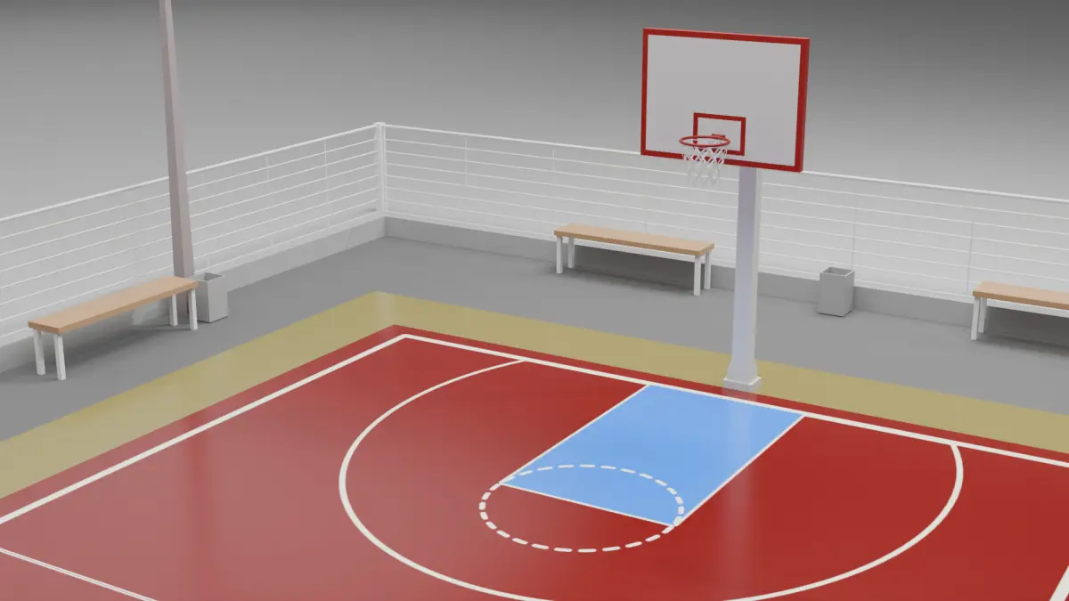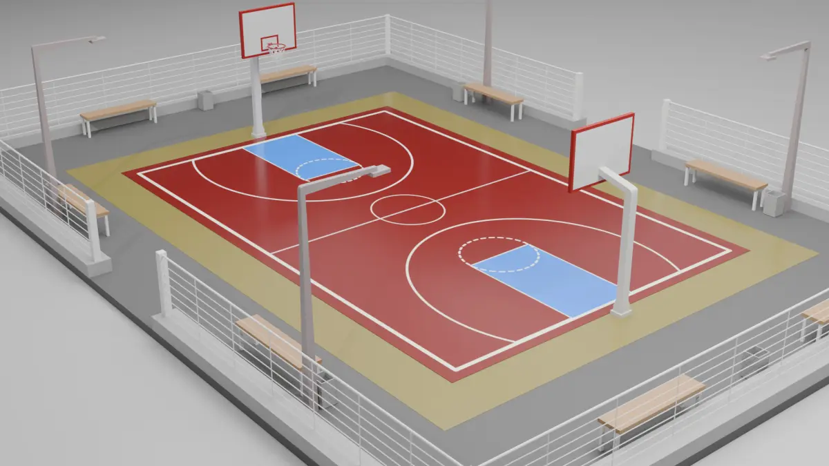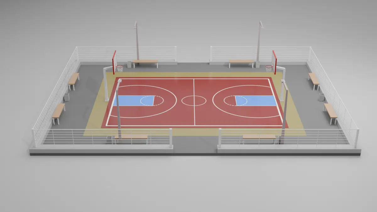 The basketball court is modeled in Blender. Cycles render was used to obtain the renders you see above. It is ready to work as you wish in your project. All you need to do is bring it to the dimensions you want.