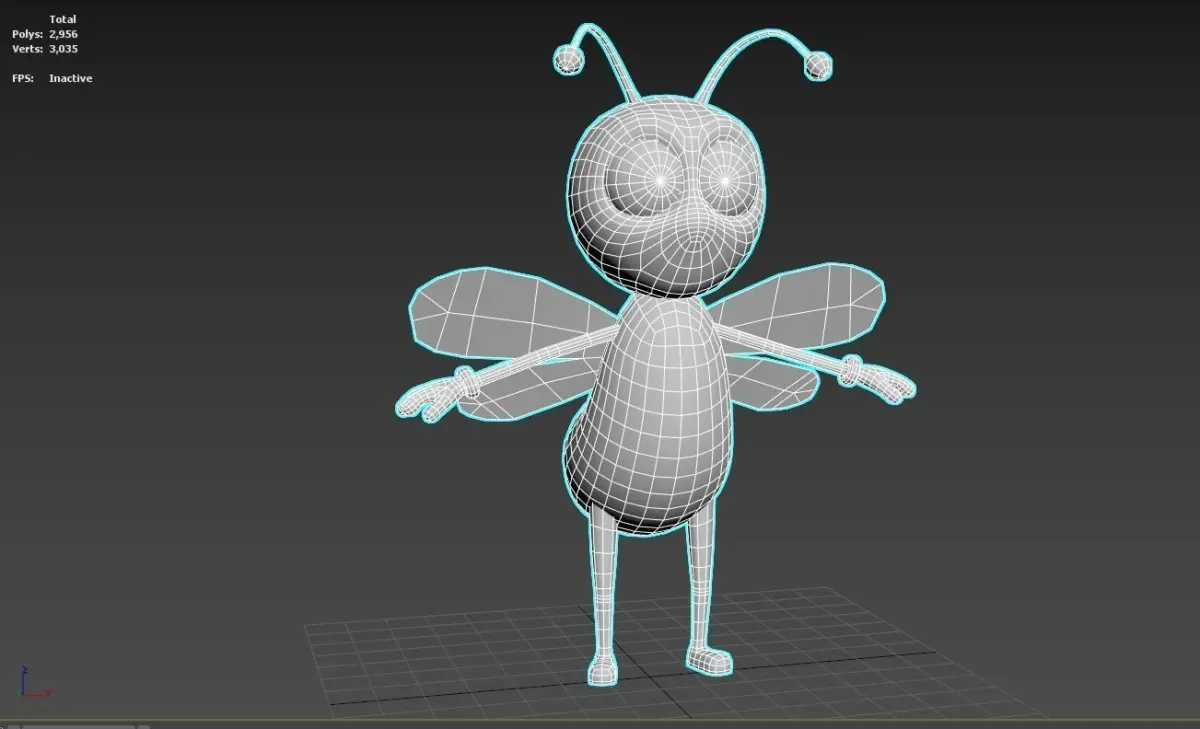 Cartoon bee character 3d model Lowpoly 2048x2048 JPG TexturePolys 2,956Verts 3,035