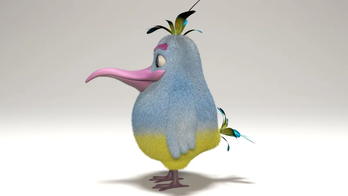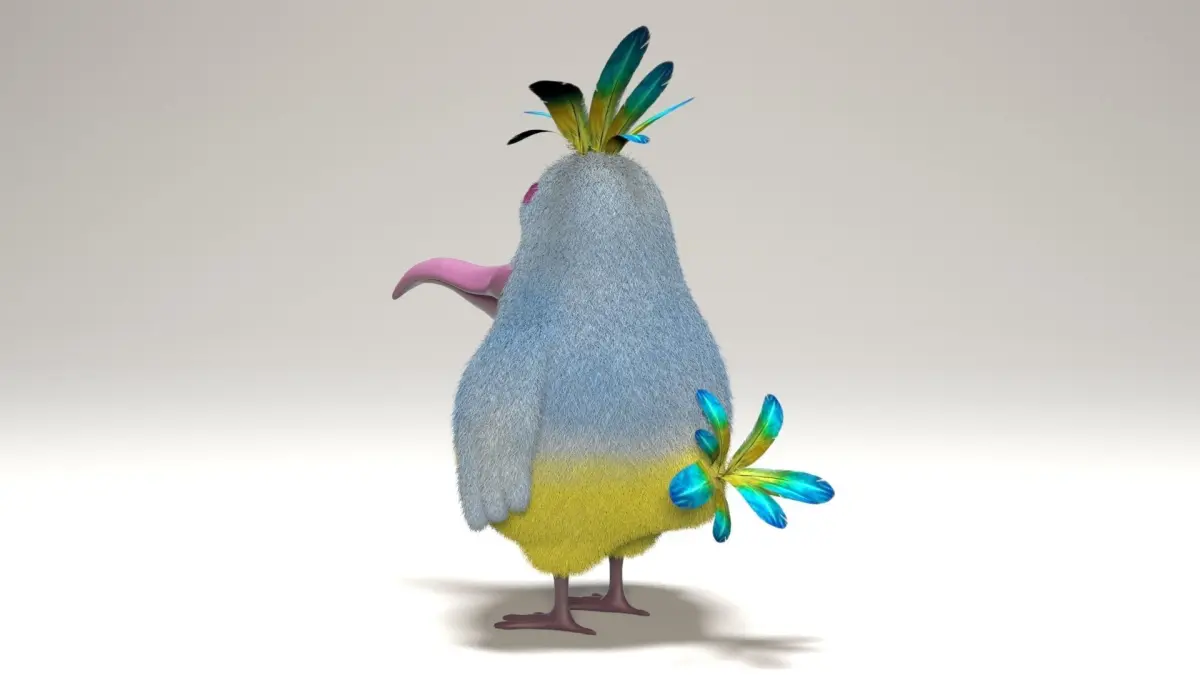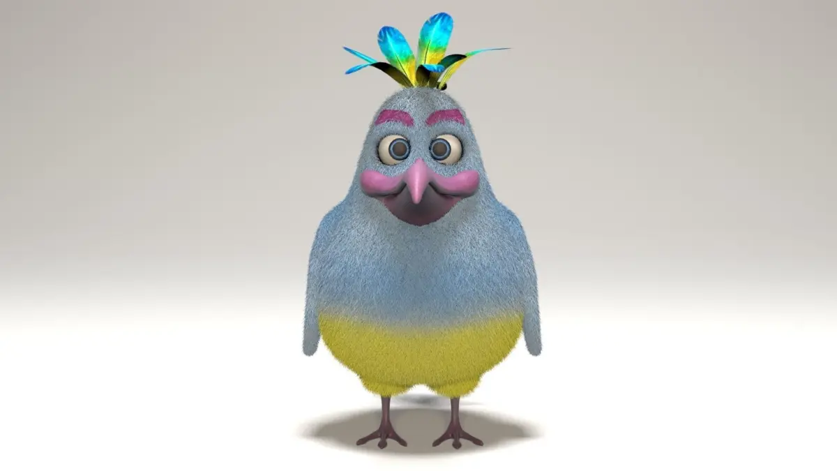 Model is 54cm tallPreview images has rendered with Vray 3.0.0, scene have same render settings as u can see on preview, just open and render.Model is separated to two parts, body mesh and other parts ( tongue, feets, eyes)Fur has edited with Vray fur for 3ds maxpackage include feather texture with alpha (everything is linked)