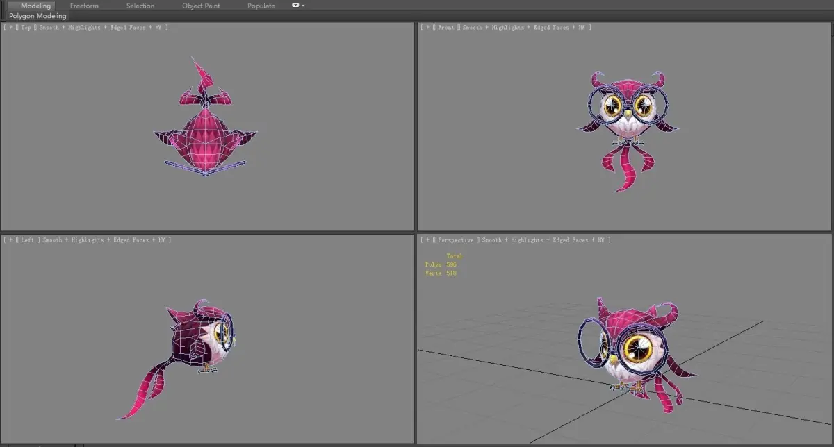 Cartoon bird - owl Low-poly 3D model