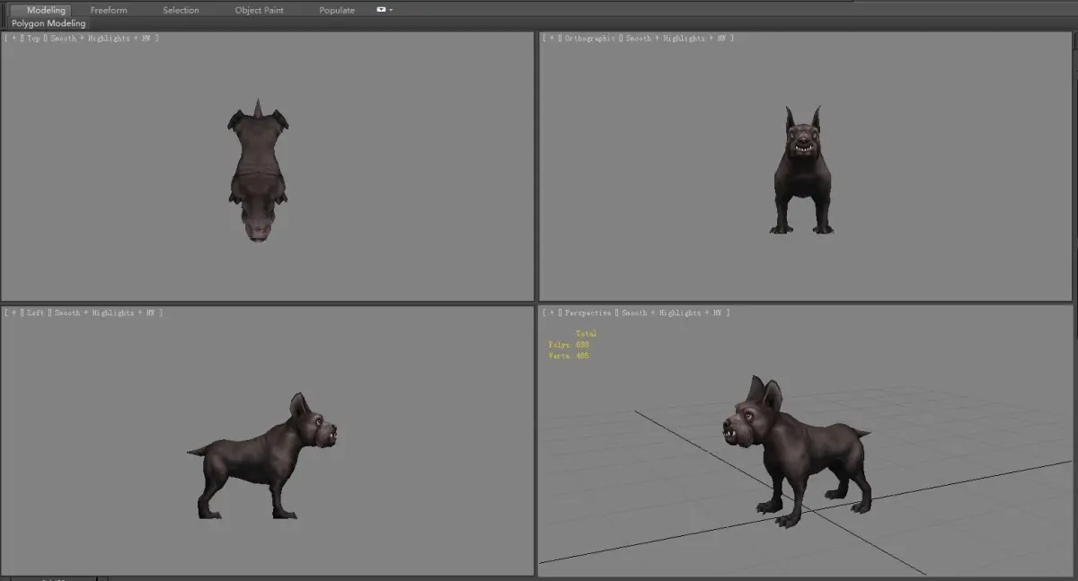 Cartoon black bulldog - puppy dog Low-poly 3D model