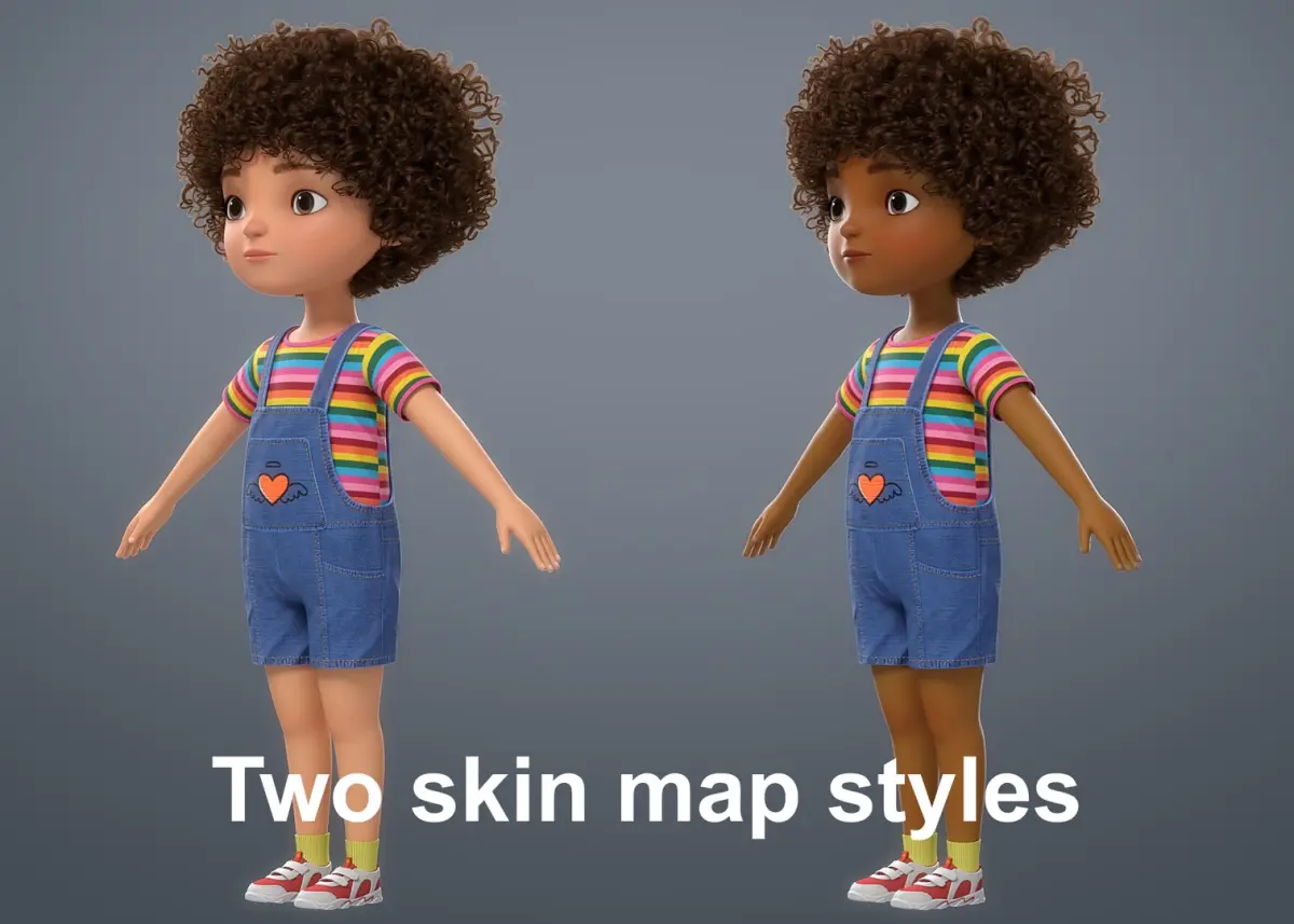 Two textures on the body: black skin tone and white skin tone.