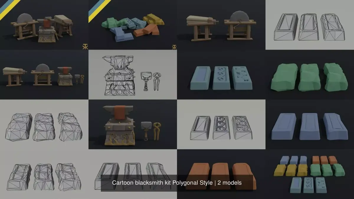 This is cartoon blacksmith kit Polygonal Style(20 object)