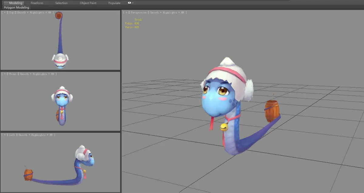 Cartoon blue snake - Baby snake Low-poly 3D model