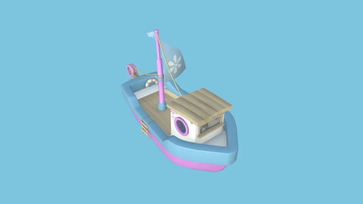 Home Catalog Cartoon Boat 05 - Pink Blue - Low Poly Ship Low-poly 3D model