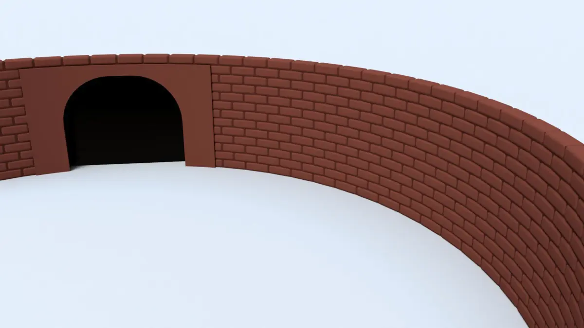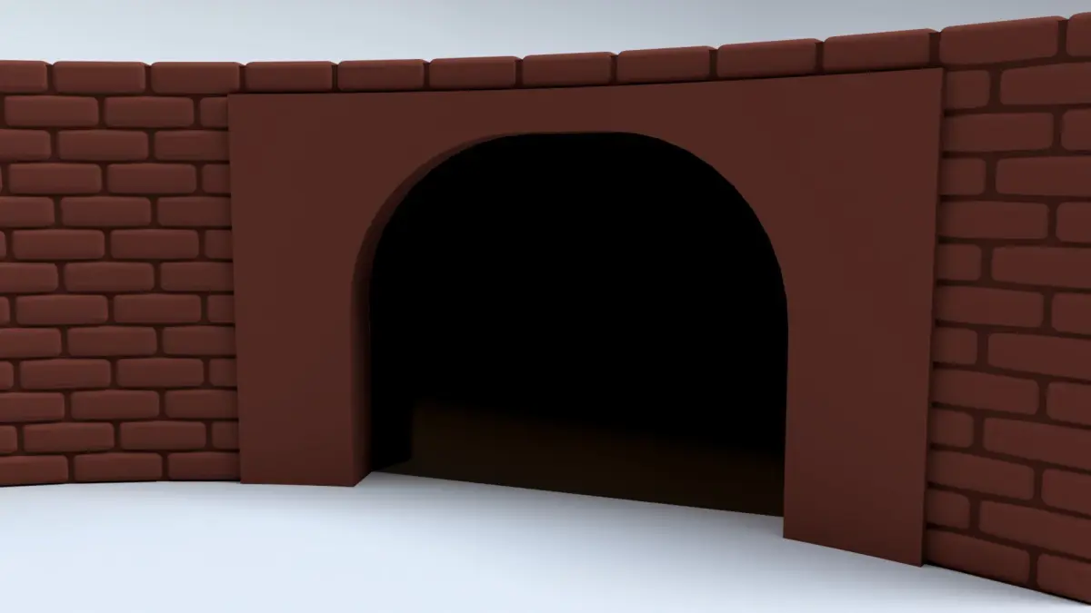 A high quality 3D model of a Cartoon Brick wall with Tunnels