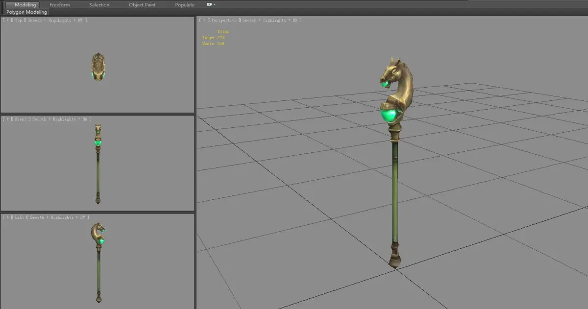 Cartoon Bronze horsehead wand Low-poly 3D model
