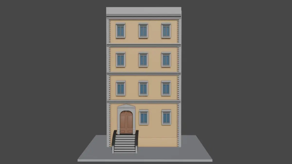 Cartoon building model using Blender program, version 3.2 low poly. This file is a building consisting of 3 floors in addition to the ground floor, decorated in a beautiful artistic way. It can be used in animation and games.
