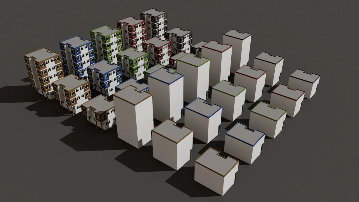 Cartoon Building Set Low Poly Buildings 300 Variant Modular