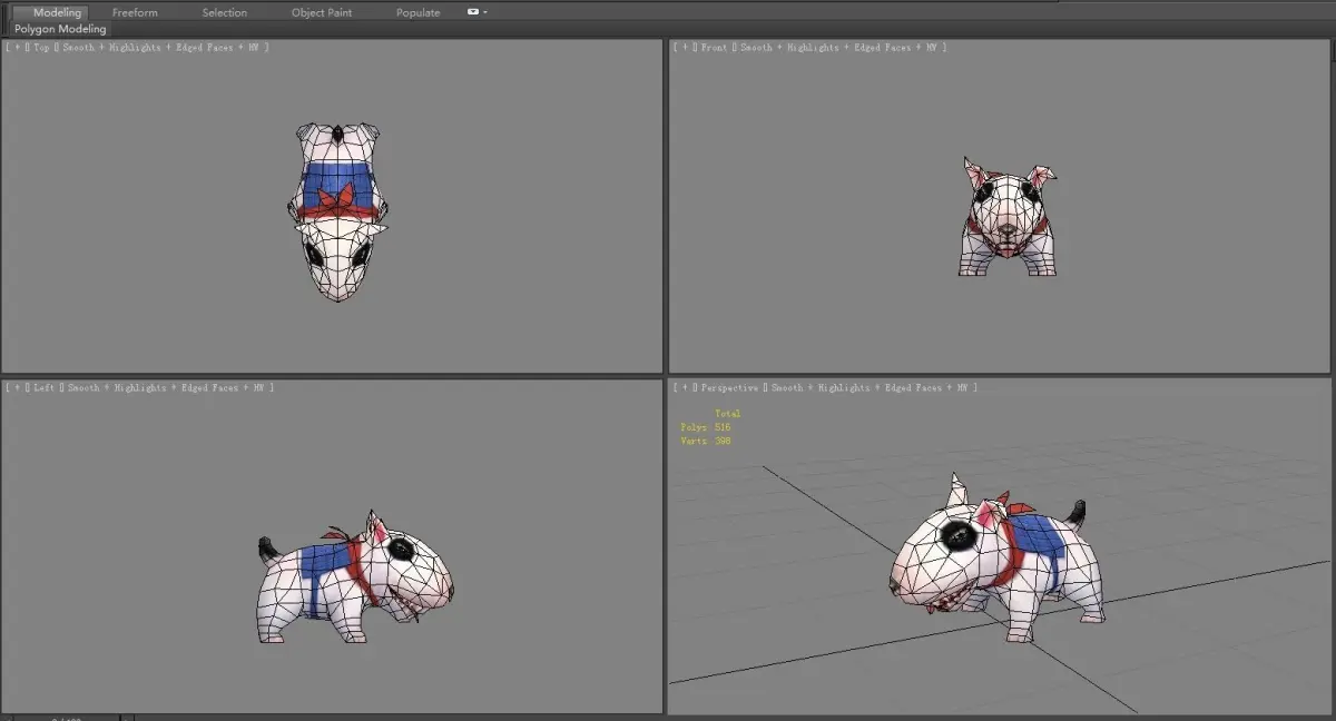 Cartoon bull terrier - puppy dog Low-poly 3D model