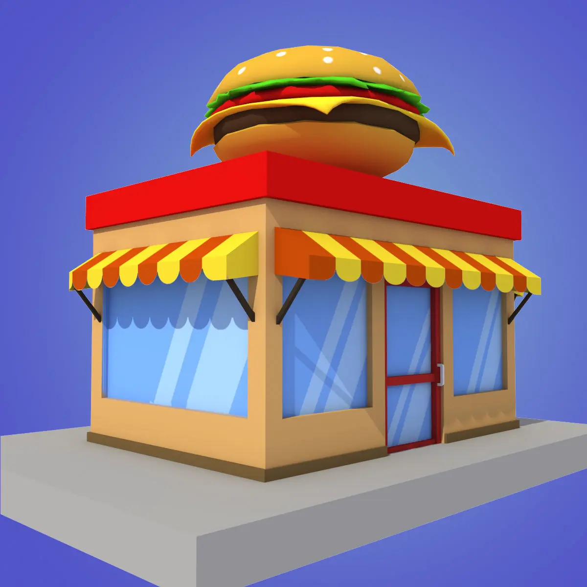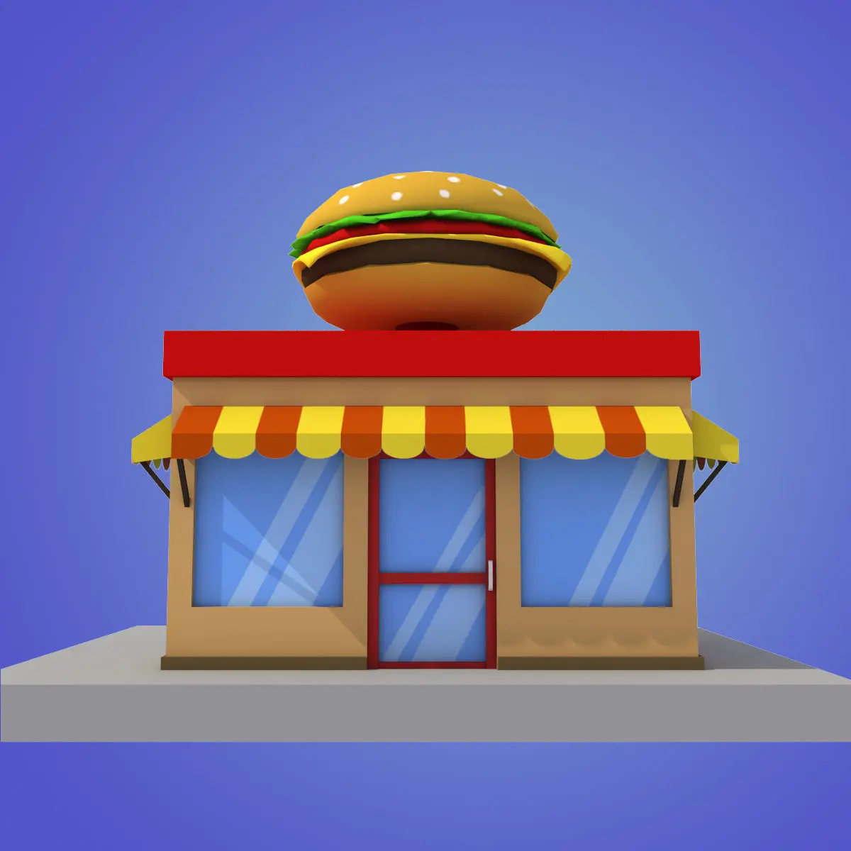 Buy cartoon burger house building low poly Low-poly 3D model