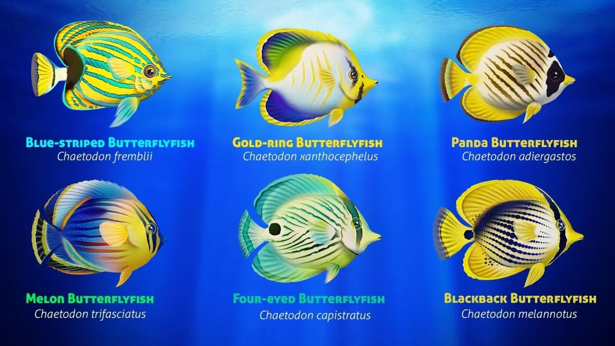 Butterflyfish, with their amazing array of colors and patterns, are among the most common sights on reefs throughout the world. This asset includes 24 species of butterfly-fish 3d models. All fishes are low-poly models with hand-painted textures, perfect for creating 3d aquarium or fishing games.