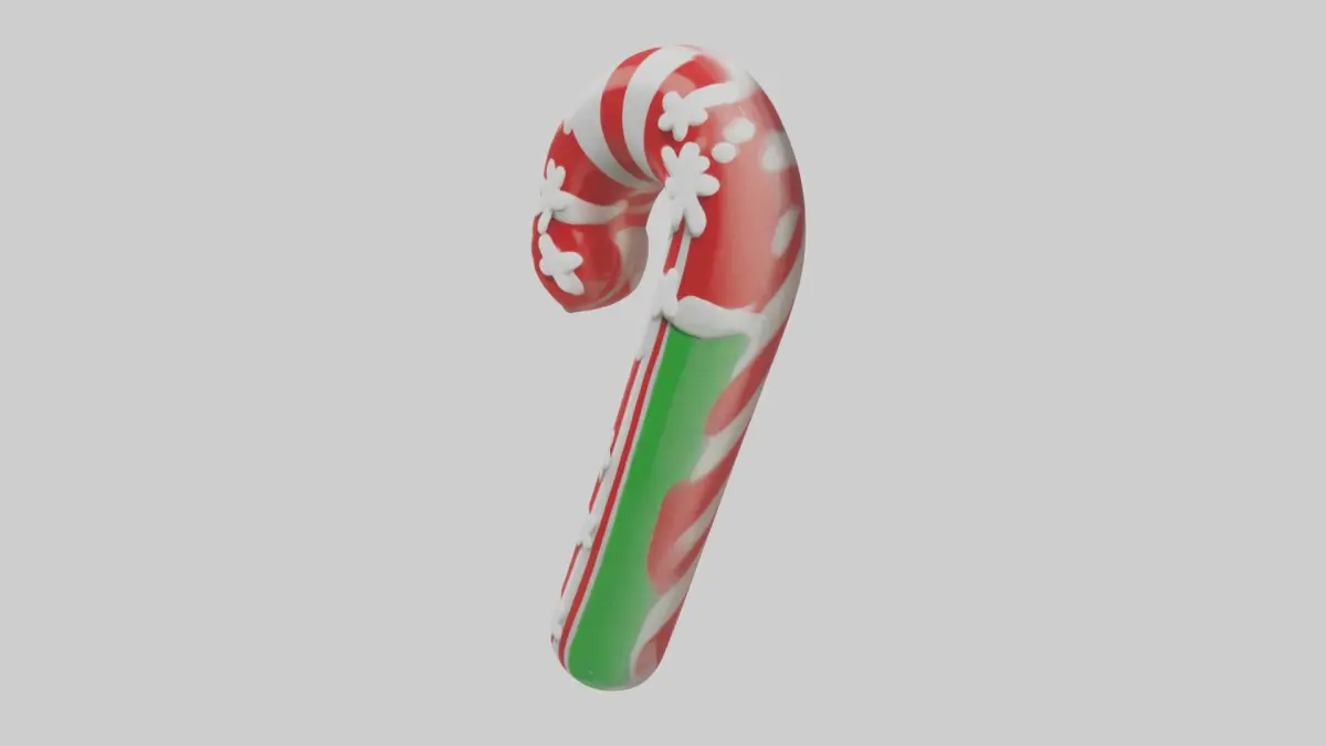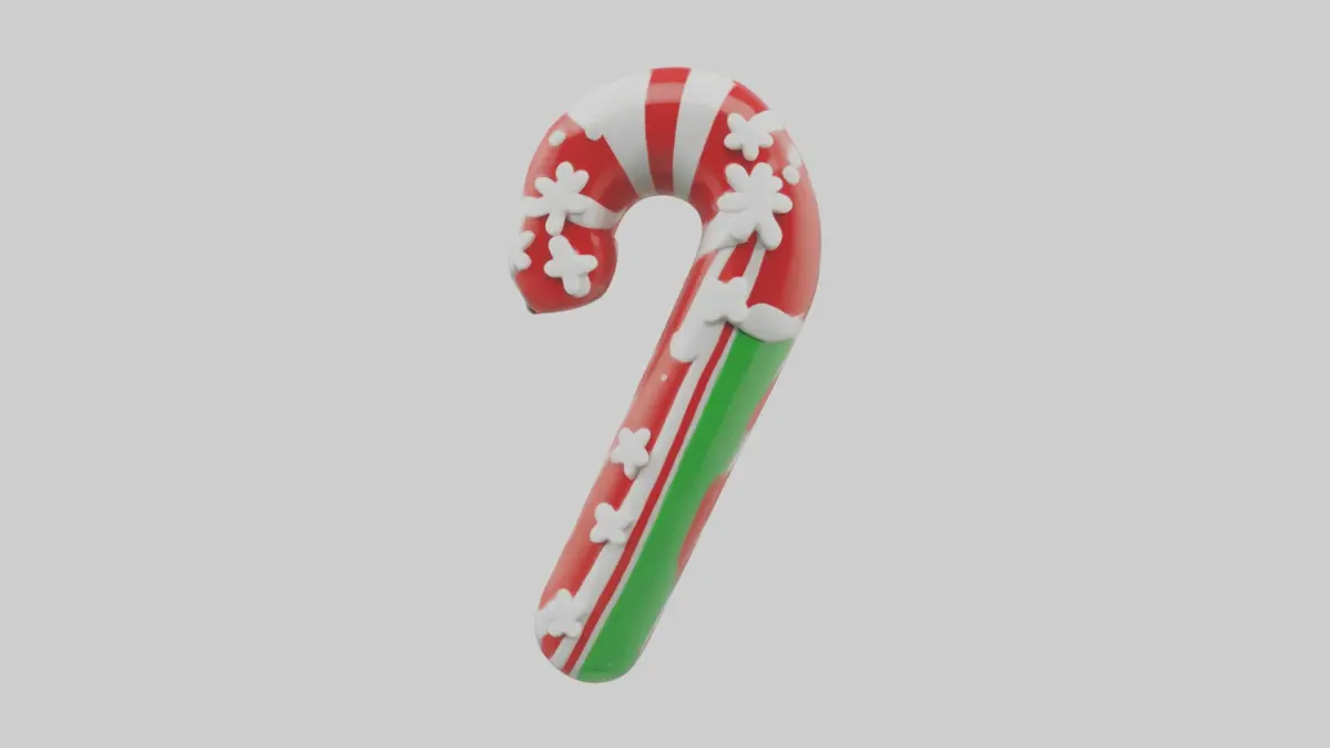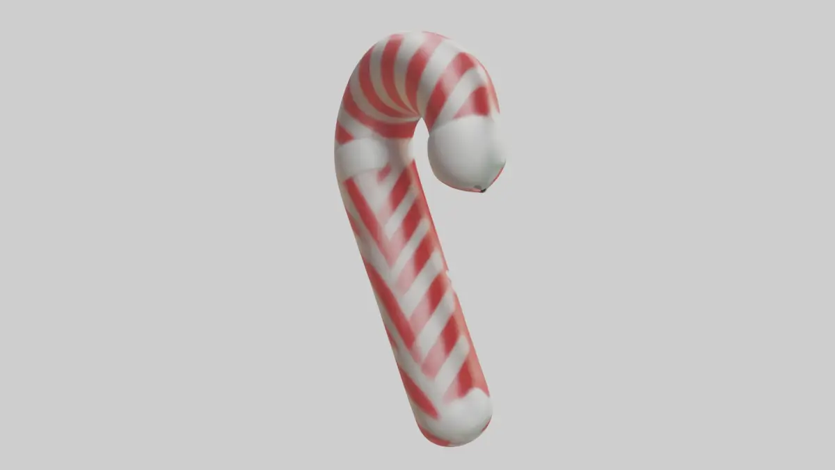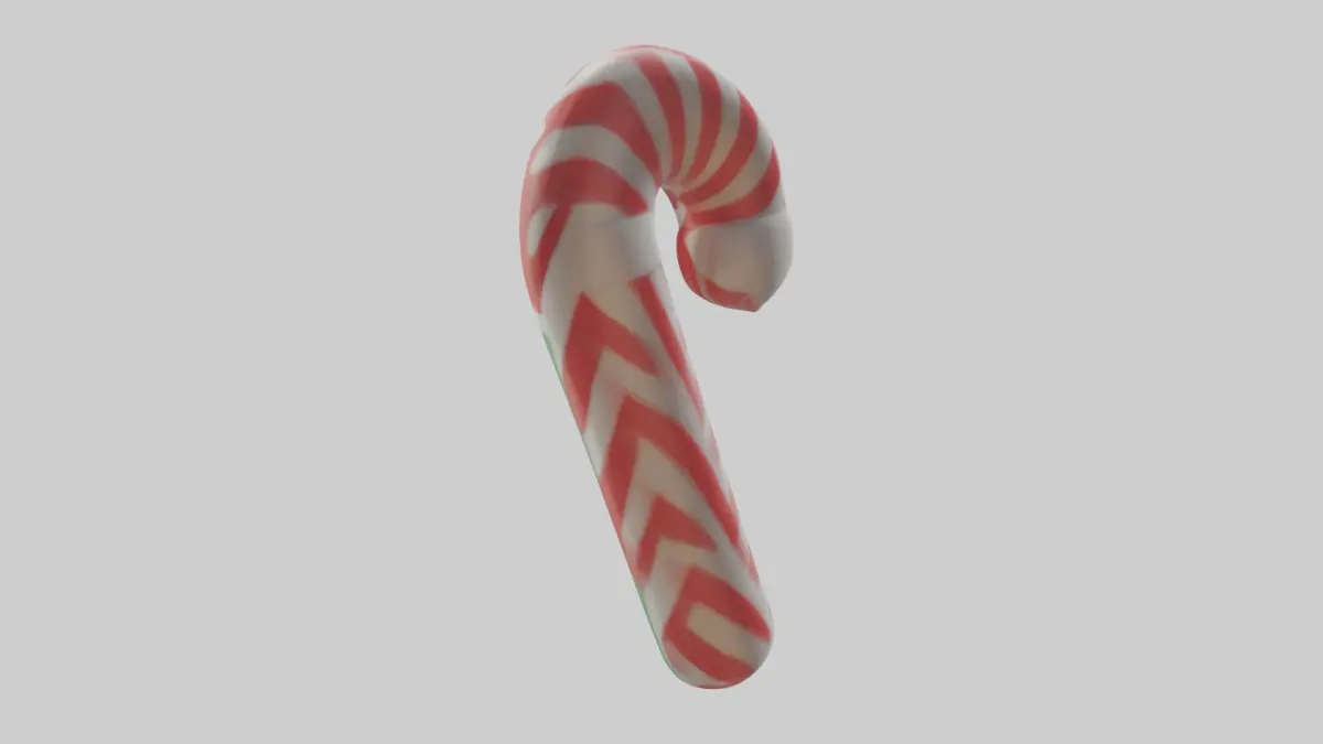 cartoon candy cane, 3D model, holiday decoration, festive treat, Christmas prop, red and white swirl, stylized design, animation asset, game design, smooth texture, whimsical style, FBX, OBJ, STL, GLB, USDZ, BLEND, holiday cheer.