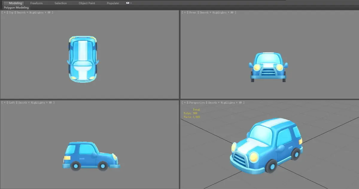 Cartoon car - blue Low-poly 3D model