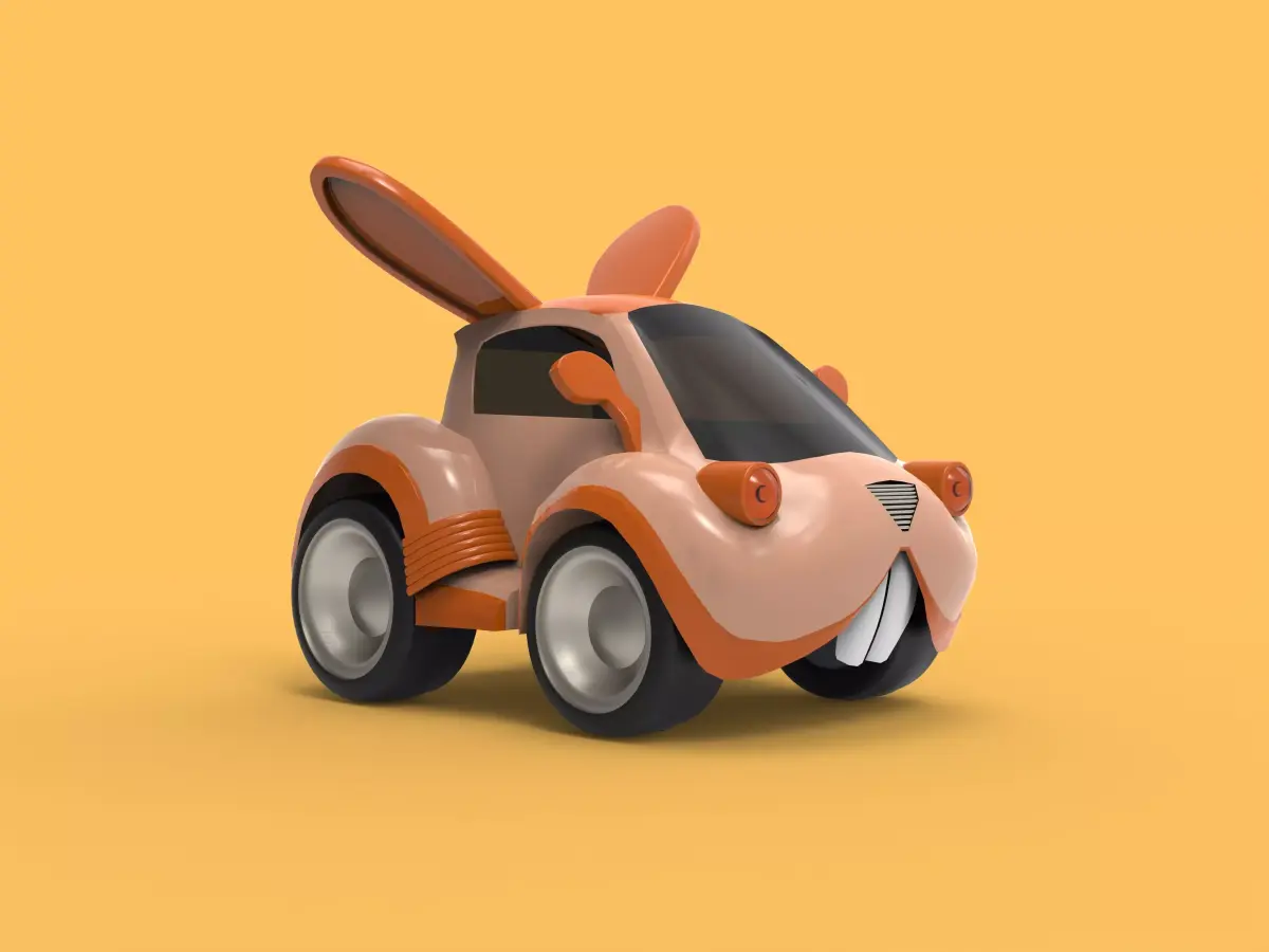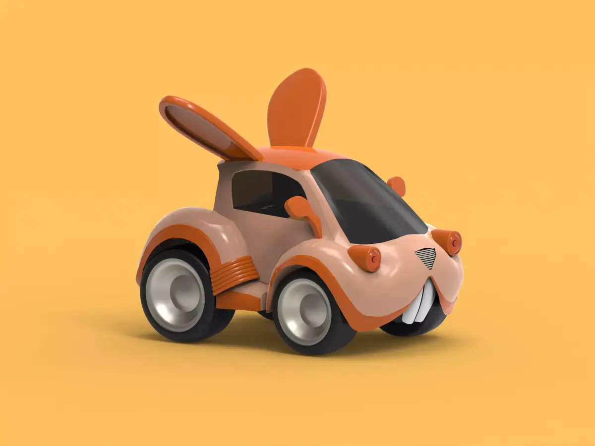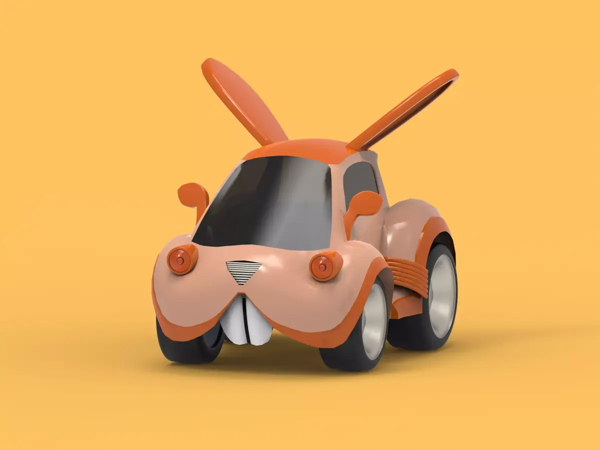 This 3D model features a playful toy car designed with a cute rabbit head as the main character. The vehicle combines smooth, rounded shapes with charming details like long ears, expressive eyes, and a friendly smile. Its compact body and stylized wheels give it a fun, cartoon-like appearance, making it ideal for animation, children’s products, or decorative 3D scenes. The model is clean, lightweight, and optimized for easy customization or color changes.