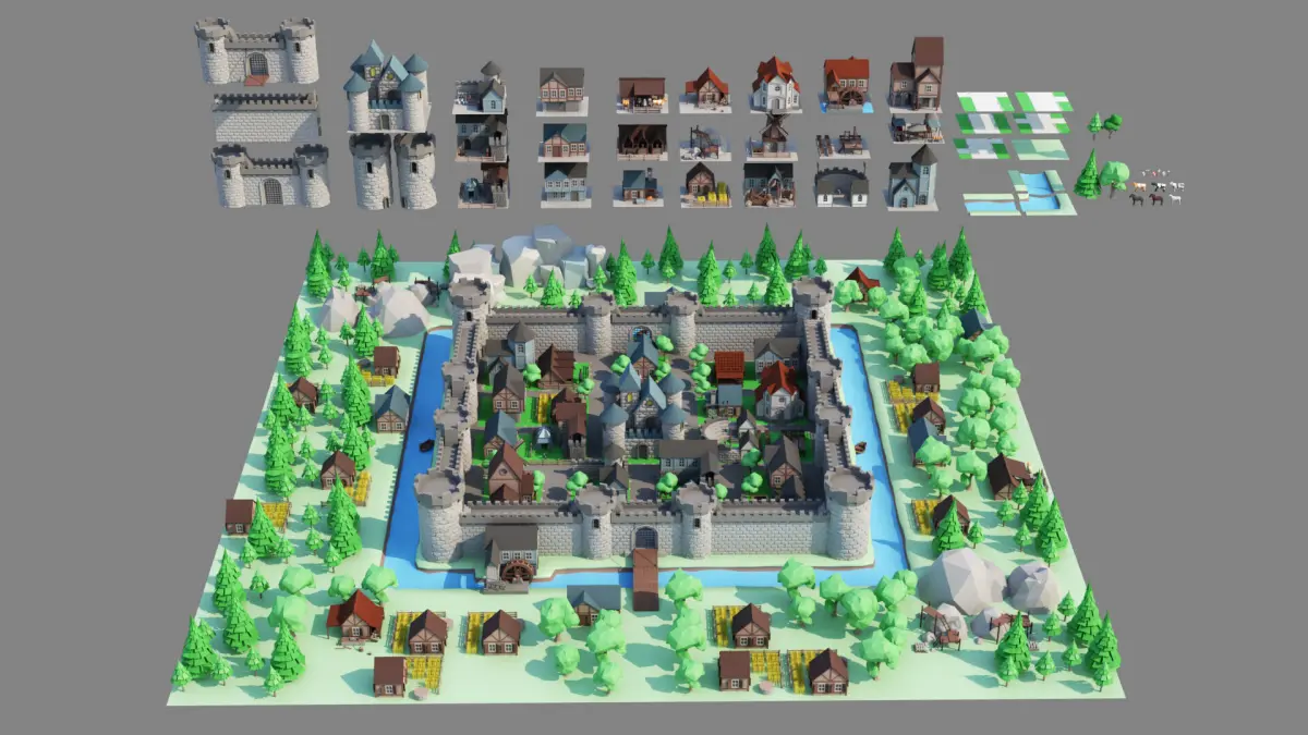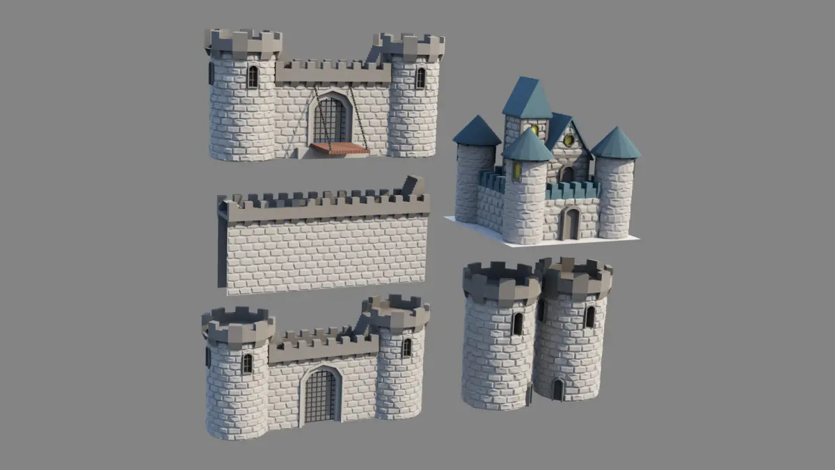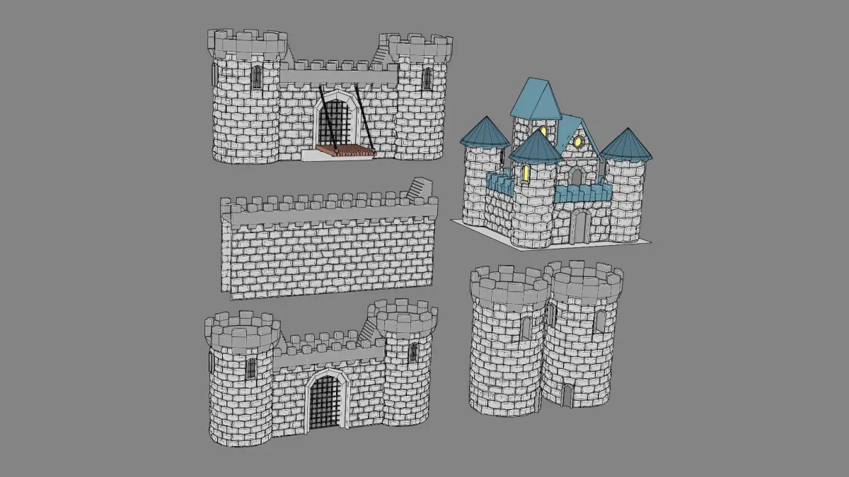 The package has all the components to create any castle. Used for games, rendering, advertising