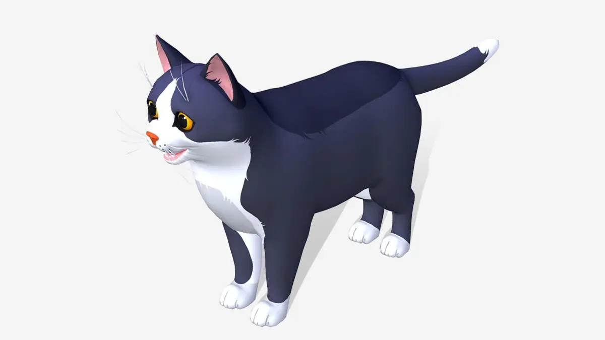 The asset includes cat accessories: food bowls, balls, cat toys, cat tray, cat house, carrier, scratching post, cat beds.