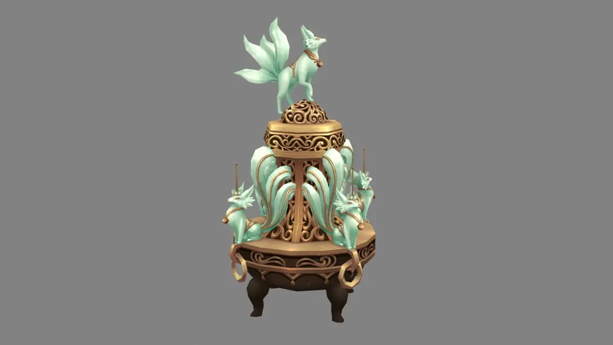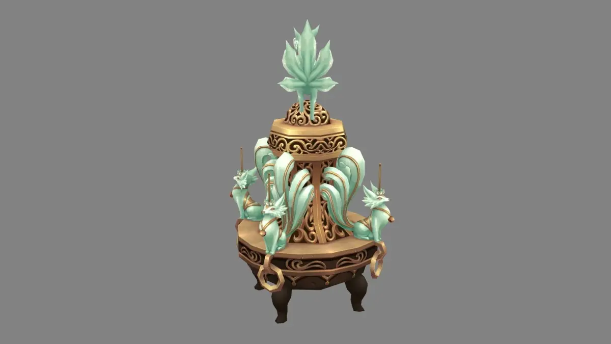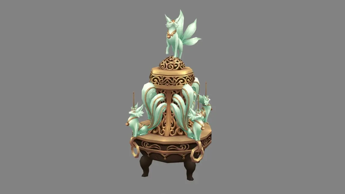 Cartoon censer and jade fox spirit Low-poly 3D model