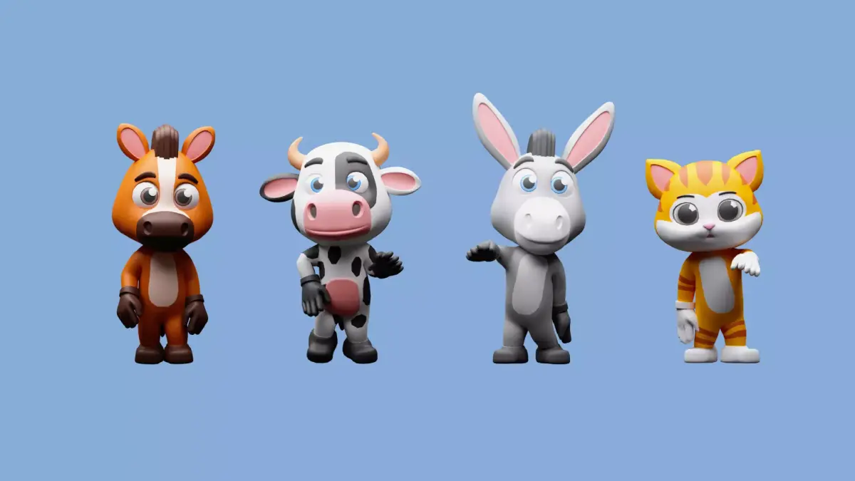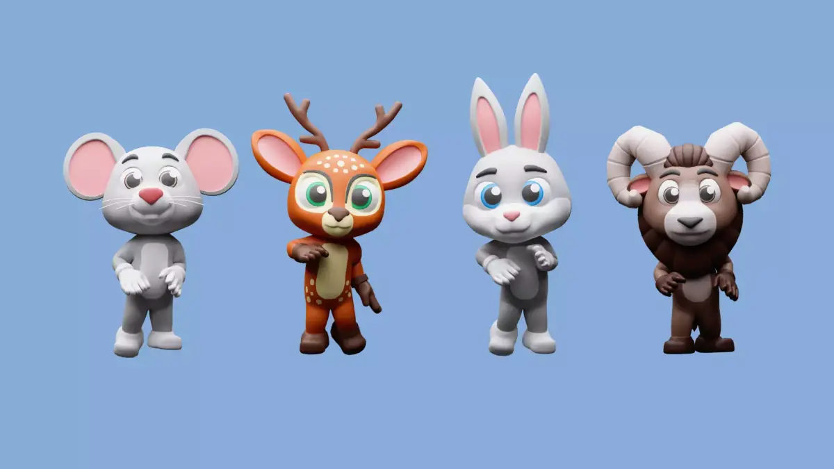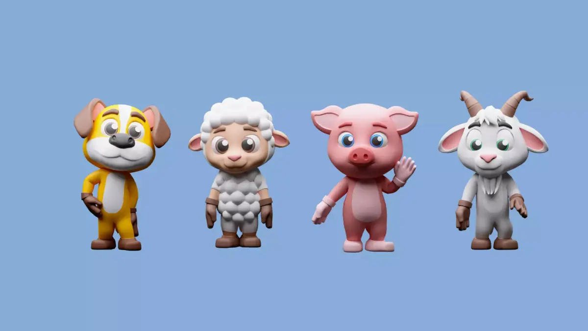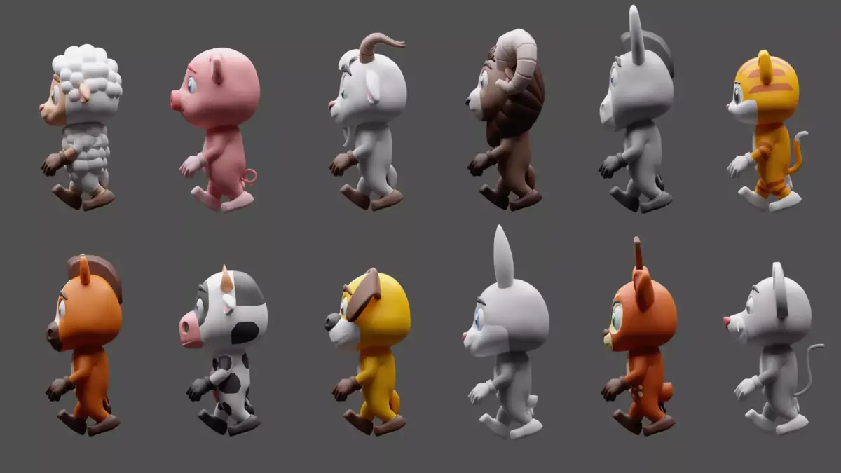 12 cartoon character models animals in the set: