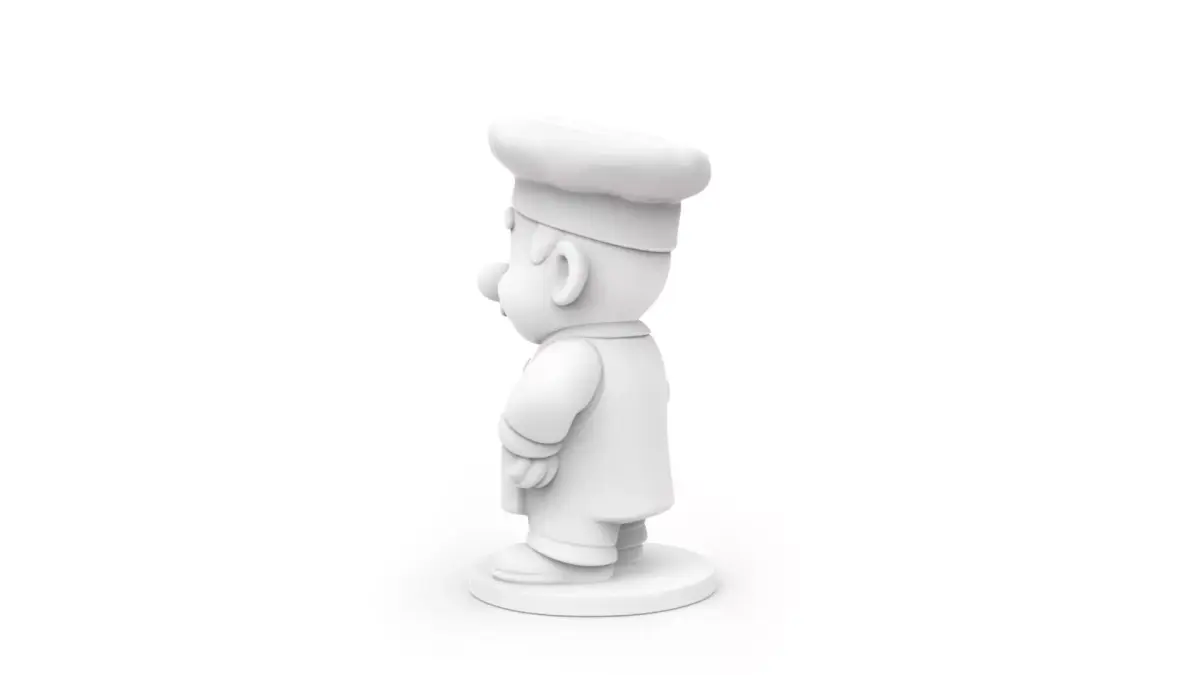 Create a delightful cartoon scene with this charming 3D printable chef model. Perfect for decorations, toys, or cake toppers, this model features a chef hat, apron, and a friendly smiling face while holding a slotted spoon. The solid model is designed for easy 3D printing. Technical specifications include optimized dimensions for easy printing and a low polygon count for efficient processing. Print settings: layer height 0.2mm, infill 15%, supports not needed. Quality assurance: tested and verified for successful printing. Key features: Chef hat, Apron, Holding a slotted spoon, Smiling face. Compatible with PLA, ABS, PETG. Post-processing: Painting. Troubleshooting: Ensure proper bed adhesion. Package includes: .STL, .PLY, .OBJ, .ZTL, .blend formats. Professional finishing: Apply a coat of primer and acrylic paint for a polished look. Use cases: 3D printing, Decoration, Toy, Cake Topper. Superior to competitors due to its charming design and print-ready optimization.