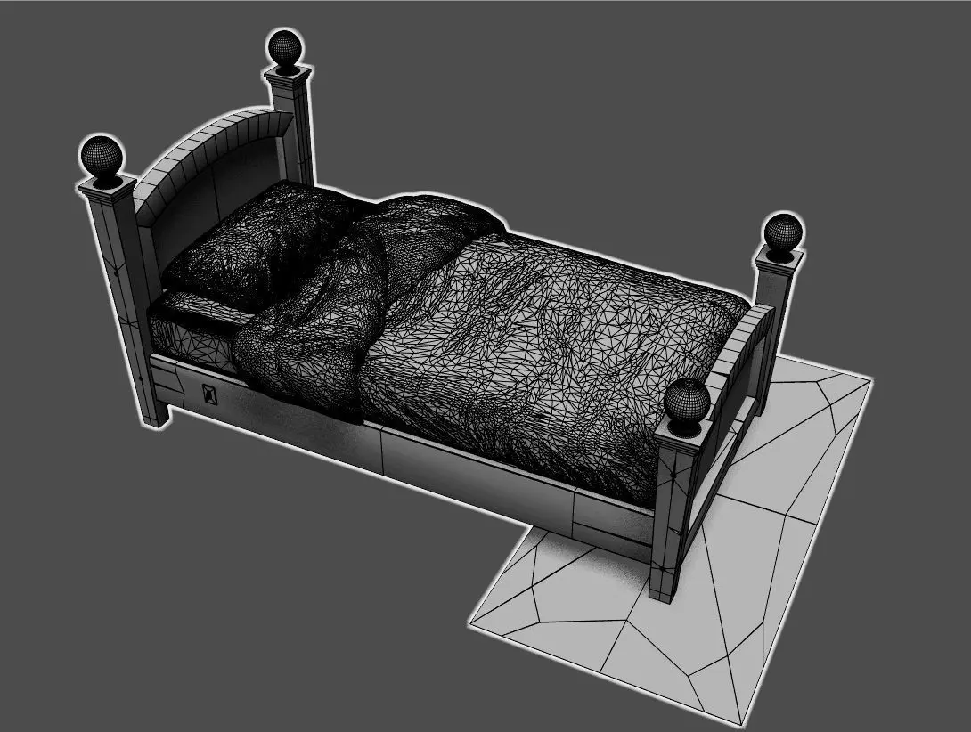 Cartoon child bed with simple rug modeled in 3D Studio Max. Standard materials only except for the lights, in which I used Arch&Design material. Please, note the Swith =)