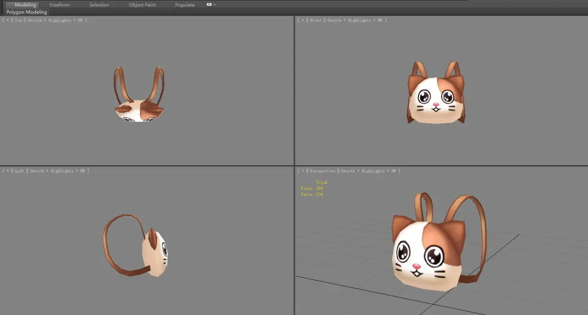 Cartoon children school bag - cat backpack Low-poly 3D model