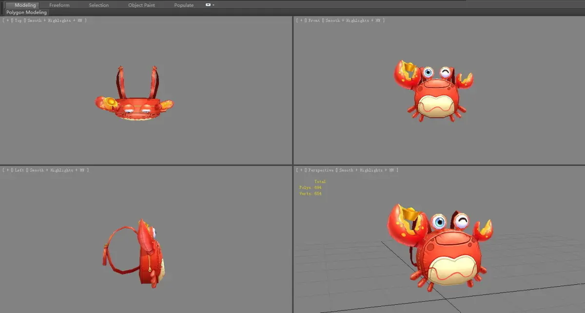 Cartoon children school bag - crab backpack Low-poly 3D model