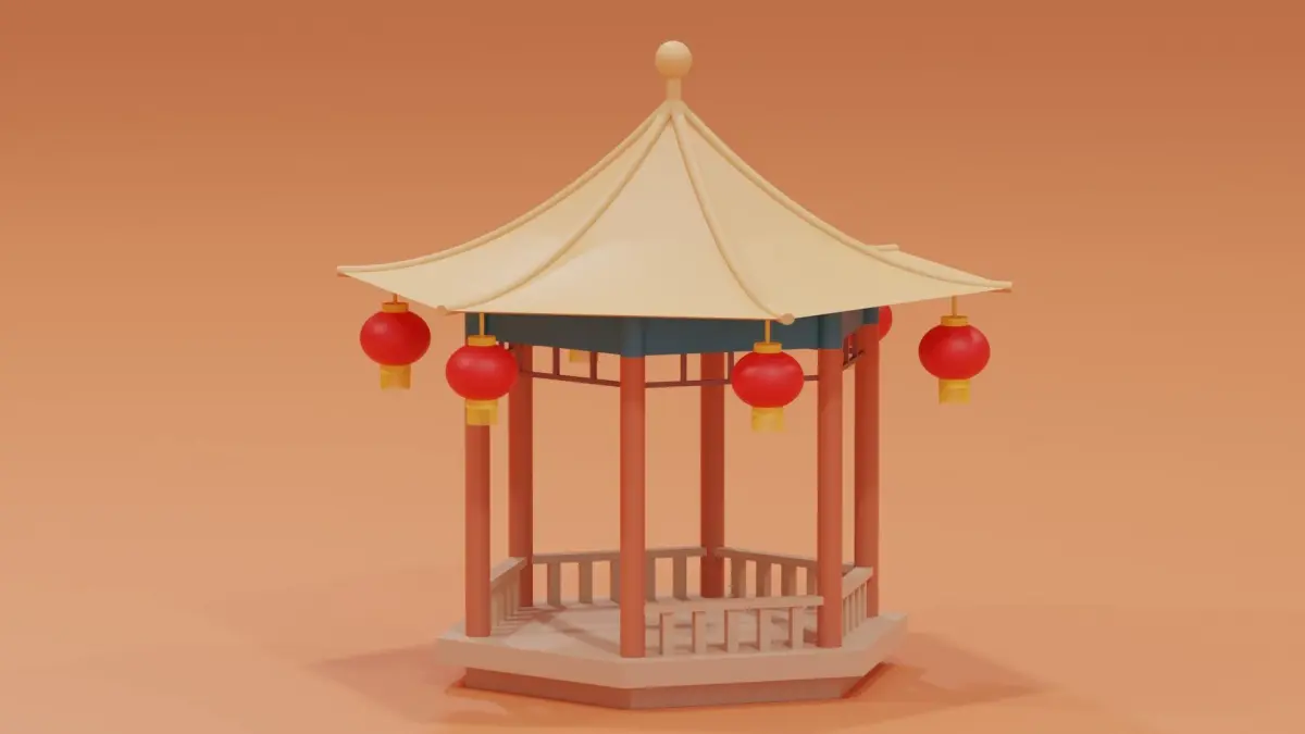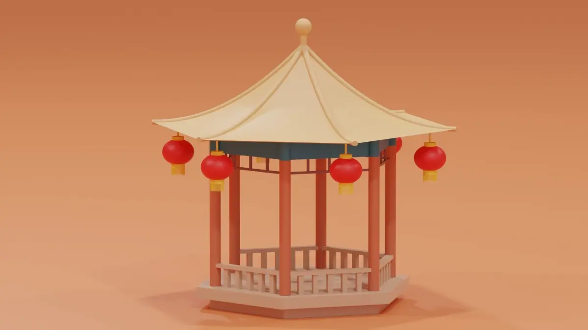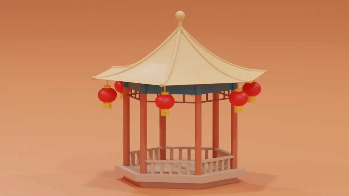 -Cartoon Chinese Pavilion.
