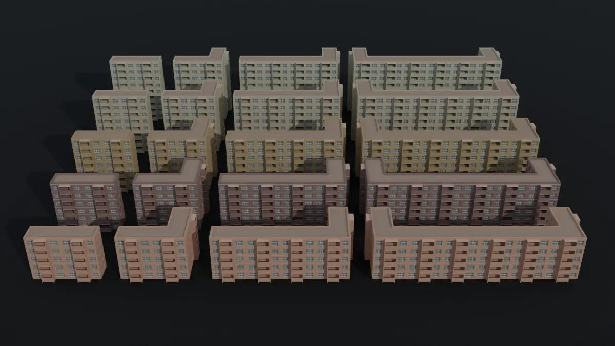 This is cartoon city apartments kit Polygonal Style(20 objects)